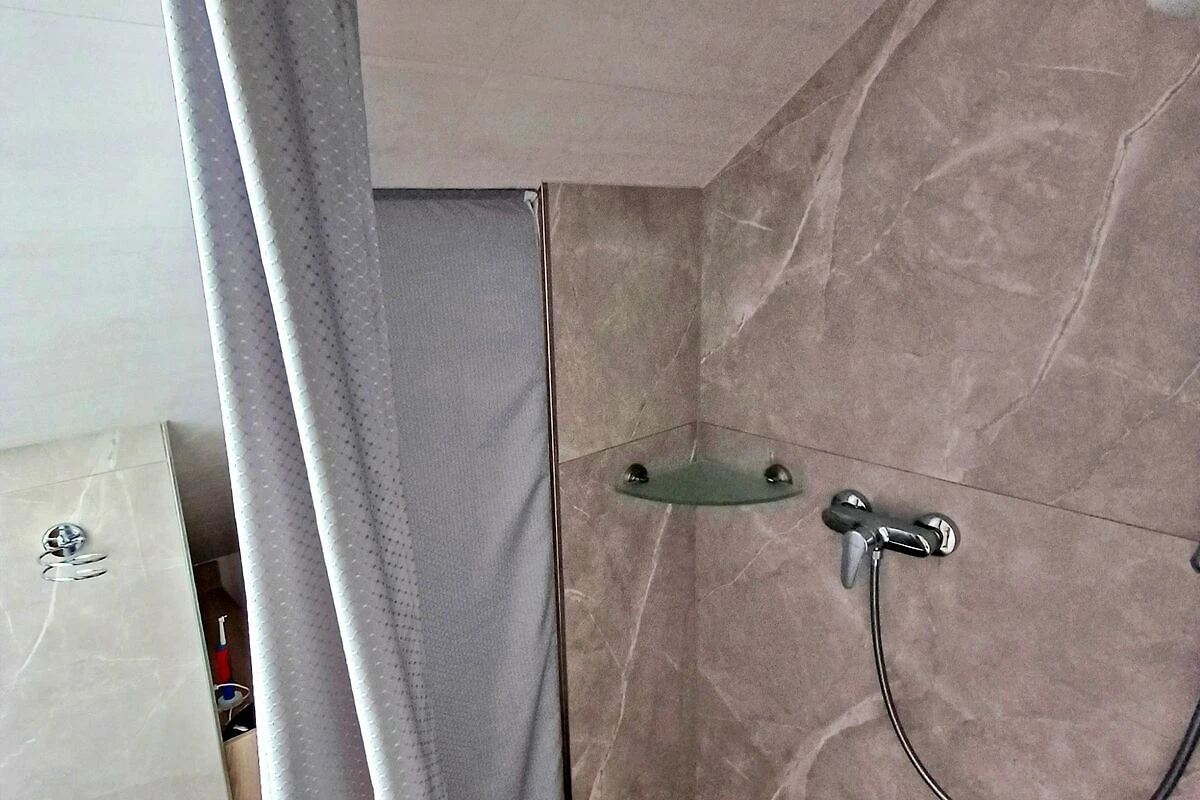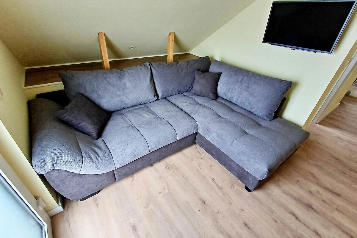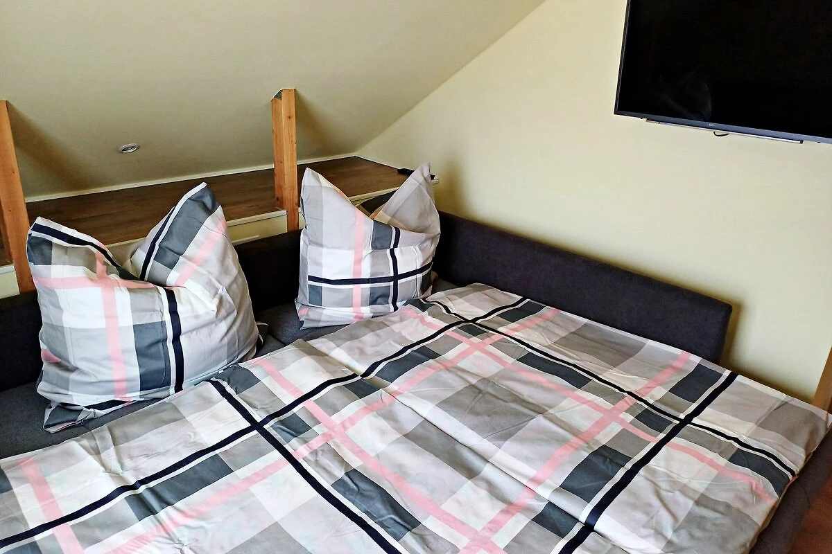 Auf 2 vollständig ausgestatteten Etagen bietet das Haus genügend Platz und allen Komfort für bis zu 5 Erwachsene und ein Kind bis 8 Jahre für einen erholsamen und gelungenen Urlaub. Das helle und freundliche Wohnzimmer im Erdgeschoss verfügt über eine grosse, gemütliche Couch-Ecke (Schlafmöglichkeit für 2 Personen) sowie einen geräumigen Essplatz und die Küchenzeile. Diese ist mit Backofen, Spülmaschine, Herd, Kühlschrank und vielem mehr ausgestattet. Direkt an das Wohnzimmer grenzt die grosszügige möblierte Hochterrasse mit direktem Seeblick. Das moderne Schlafzimmer verfügt über ein Doppelbett (durchgehende Matratze 1,80 m x 2,00 m). Von hier aus erreichen Sie auch das Tageslicht-Badezimmer mit ebenerdiger Dusche und WC.