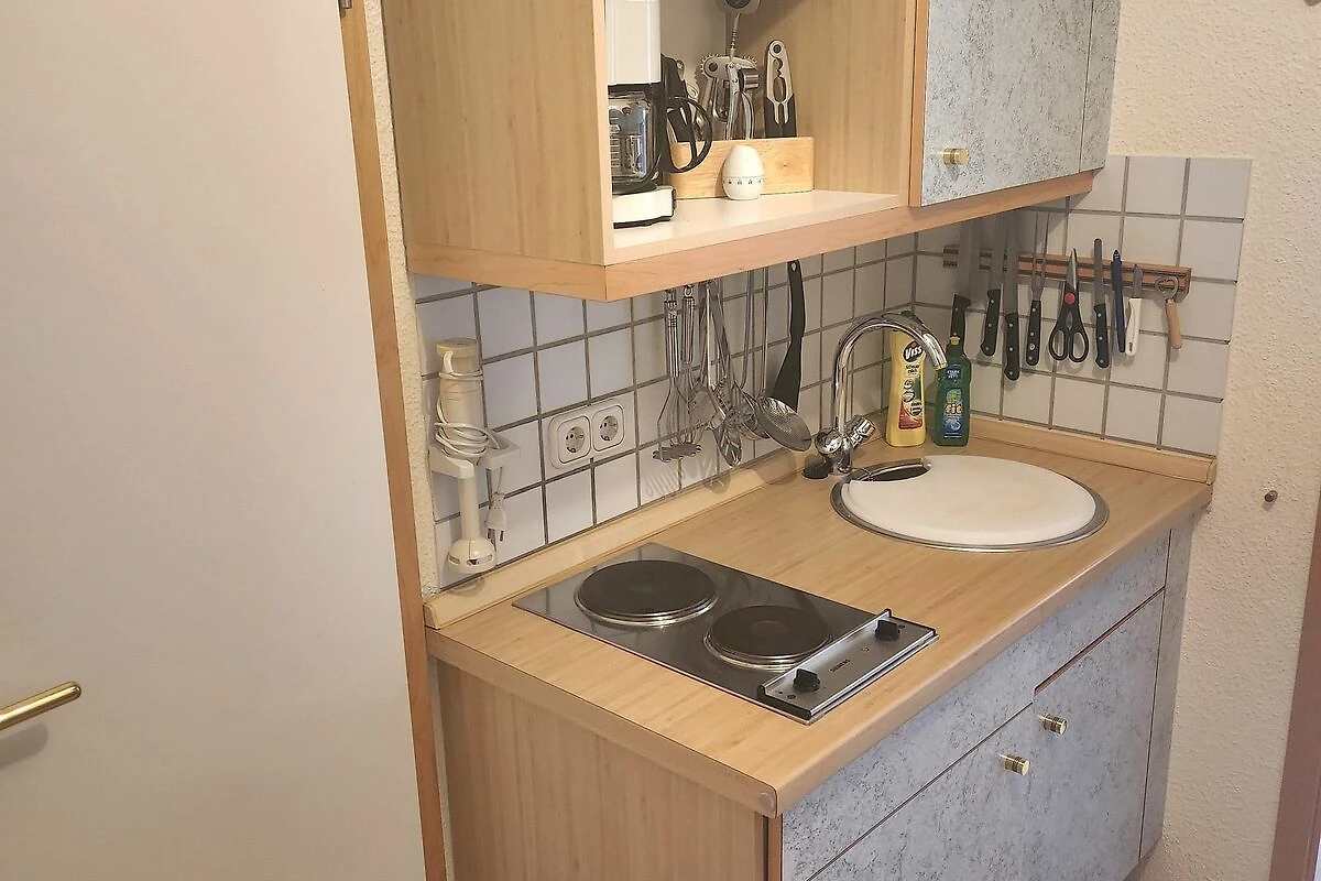 Eine kleine, aber funktionale Küchenzeile ist im Raum integriert ideal für die Zubereitung kleiner Mahlzeiten. Das Badezimmer verfügt über Dusche und WC und ist ebenfalls mit einer gemütlichen Dachschräge versehen.
