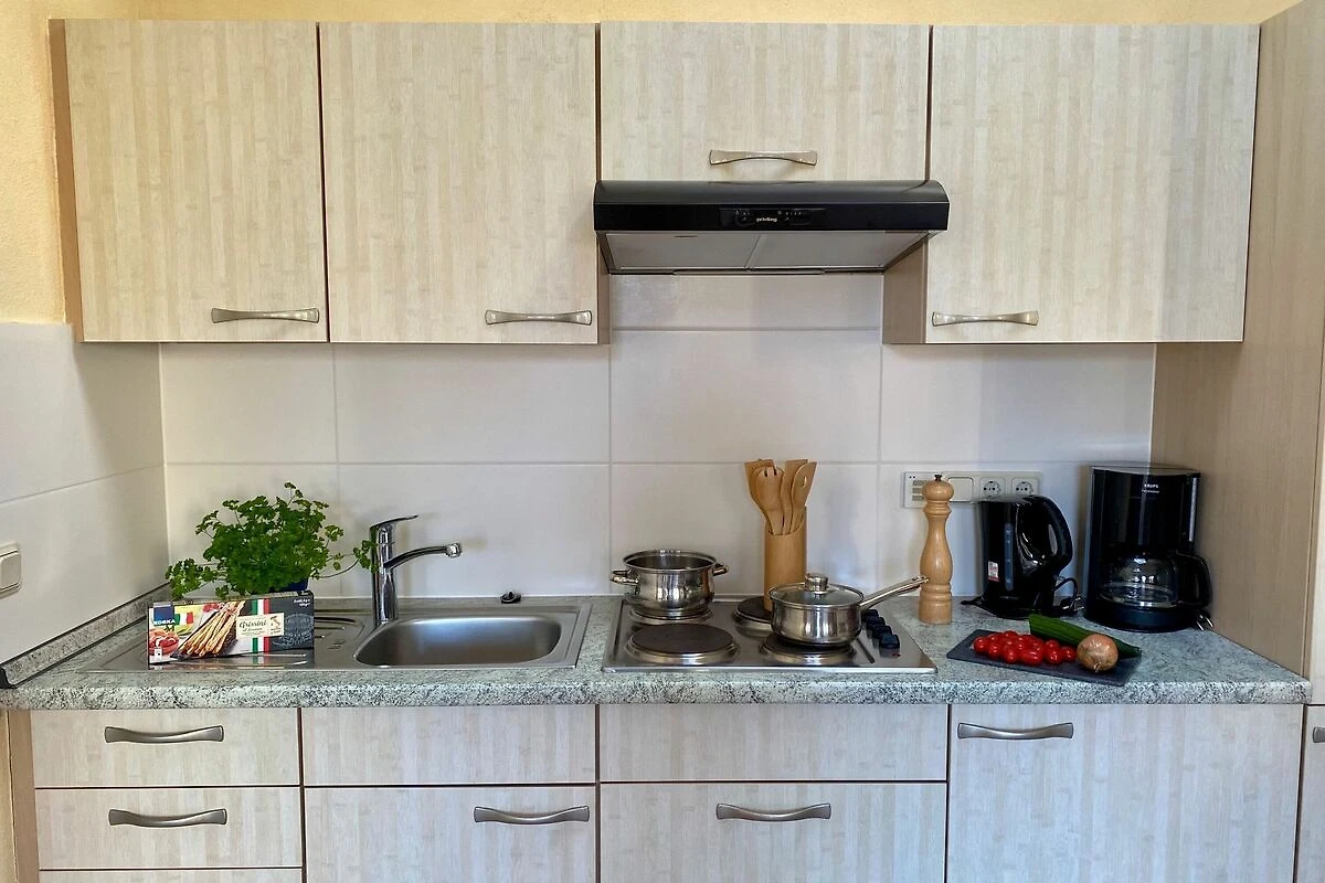 Auf 35 m² bietet die Wohnung alles, was Sie für einen erholsamen Urlaub brauchen: ein behagliches Schlafzimmer, ein gepflegtes Badezimmer sowie einen Balkon, der zum Verweilen im Freien einlädt ob bei einem Kaffee am Morgen oder einem entspannten Ausklang des Tages.