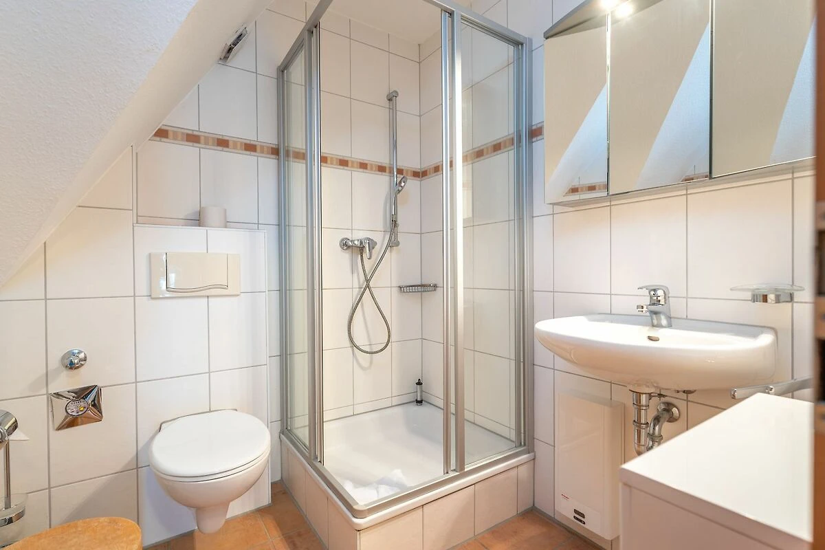 • Modernes Badezimmer: Ausgestattet mit einer praktischen Dusche. Die Zugänglichkeit von Waschmaschine und Trockner im Haus trägt wesentlich zu Ihrem Komfort bei.