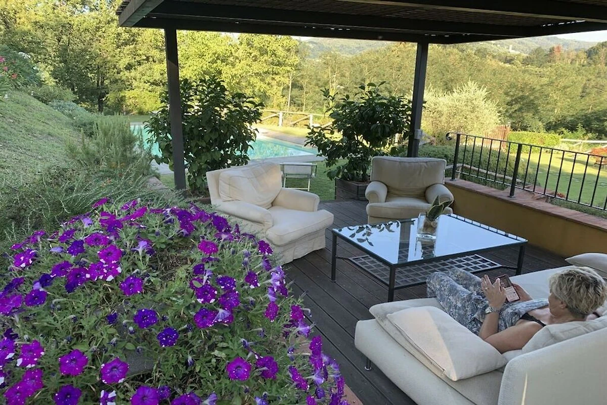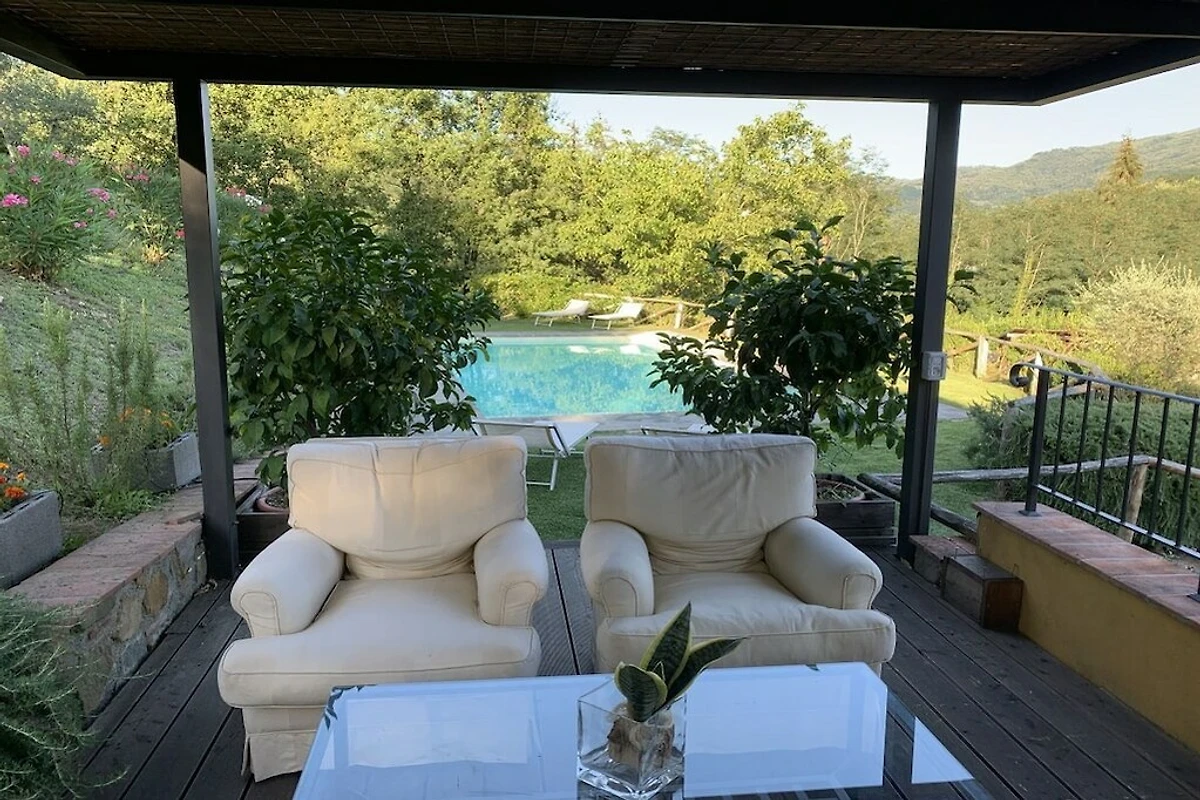 Im Erdgeschoss befindet sich ein Wohnzimmer mit Sitzgelegenheiten und Satelliten Fernseher (großer Fernseher). Ein großer Kamin vollendet eine typisch toskanische Atmosphäre (der Kamin ist nur Deko).