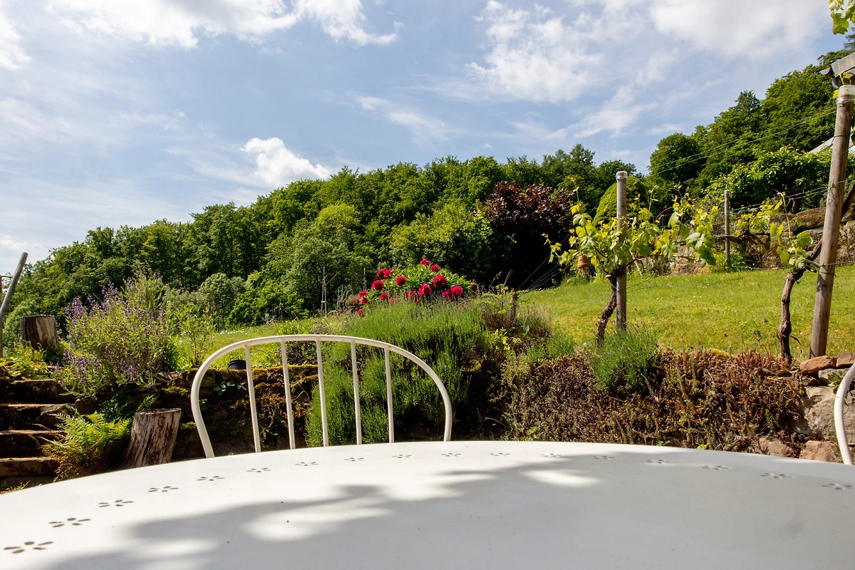 - private, teilüberdachte Terrasse mit Sonnenschirm