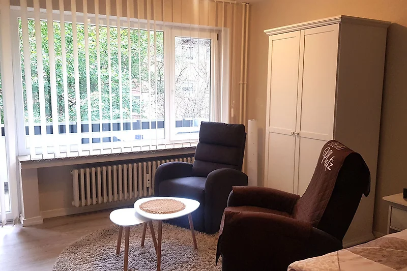 Es verfügt über eine Einbauküche, einen grossen Wohn-/Schlafbereich, Süd-Balkon, einen weiteren Schlafraum mit einem Einzelbett sowie ein modernes Dusch/WC und ist auch für längerfristige berufsbedingte Aufenthalte sehr gut geeignet.