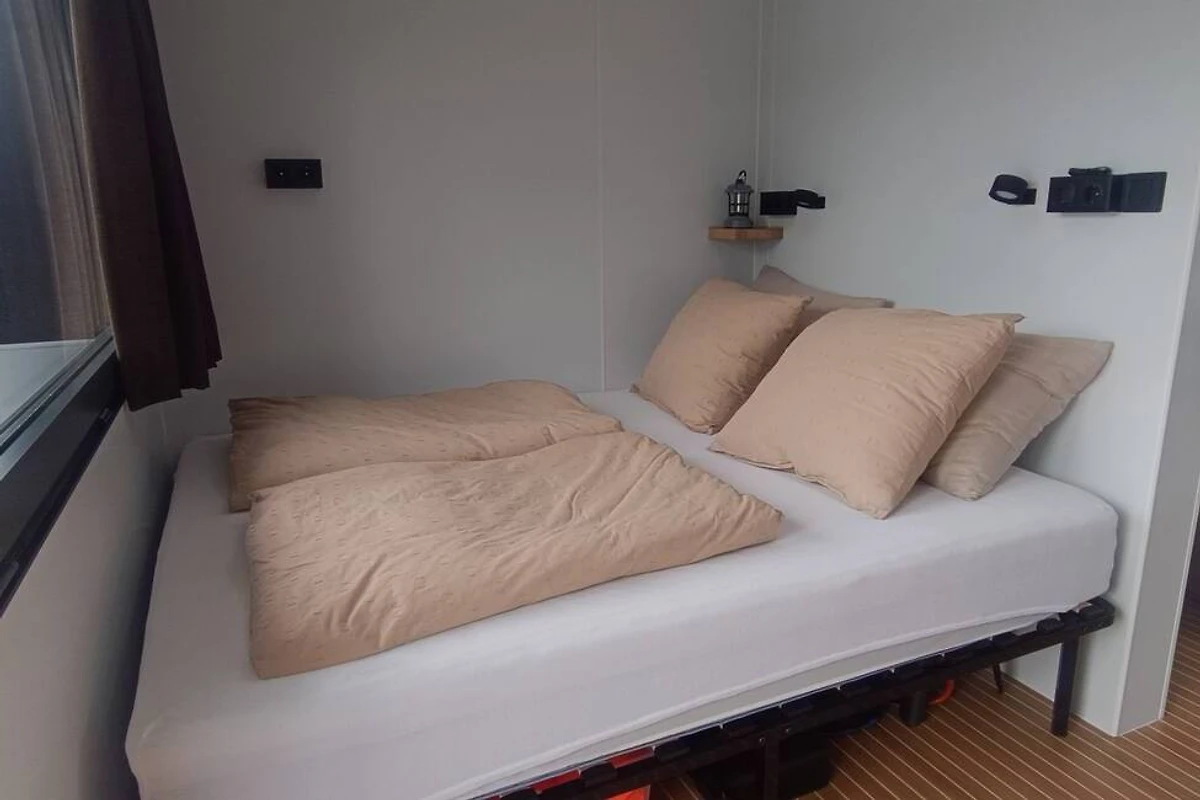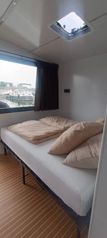 Dieses komfortable und stimmungsvolle Hausboot von 36 m² bietet Platz für maximal 4 Personen (zwei Erwachsene und zwei Kinder) und verbindet Abenteuer mit dem Komfort von Zuhause. Das Hausboot verfügt über ein Schlafzimmer mit Blick aufs Wasser, einen zweiten Schlafplatz durch das Schlafsofa, ein modernes Badezimmer mit Dusche, eine separate Toilette und eine voll ausgestattete Küche mit Kochfeld, Kühlschrank, Wasserkocher, Kaffeemaschine und Milchaufschäumer.