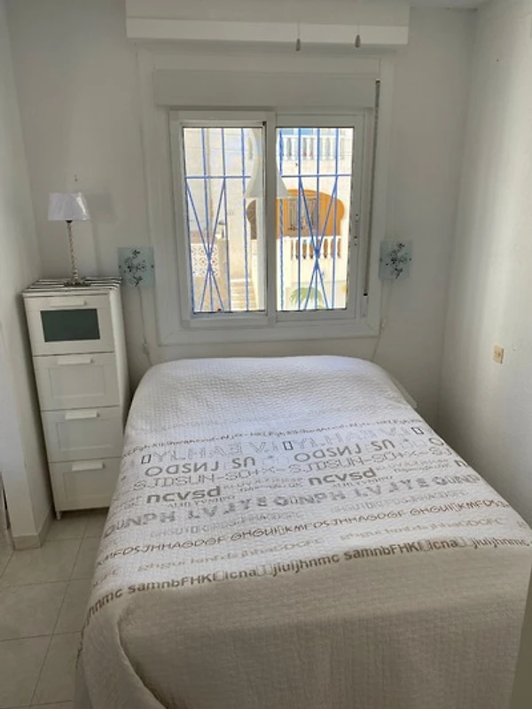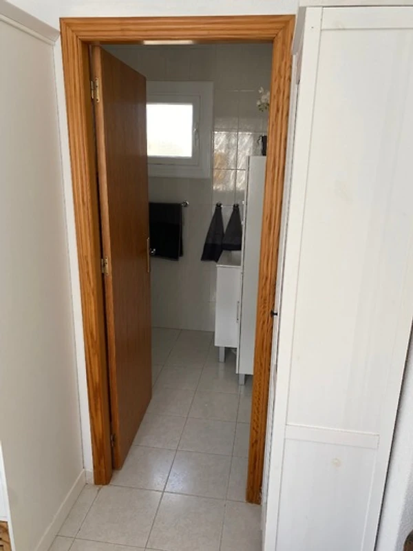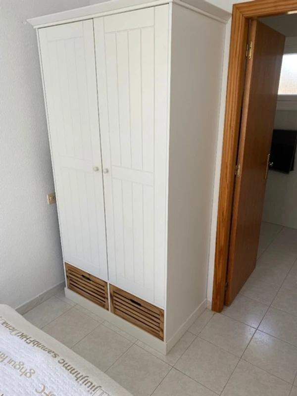 Das Schlafzimmer ist ein Rückzugsort der Gemütlichkeit, ausgestattet mit einem komfortablen Doppelbett, weicher Bettwäsche und reichlich Stauraum für Ihre persönlichen Gegenstände.