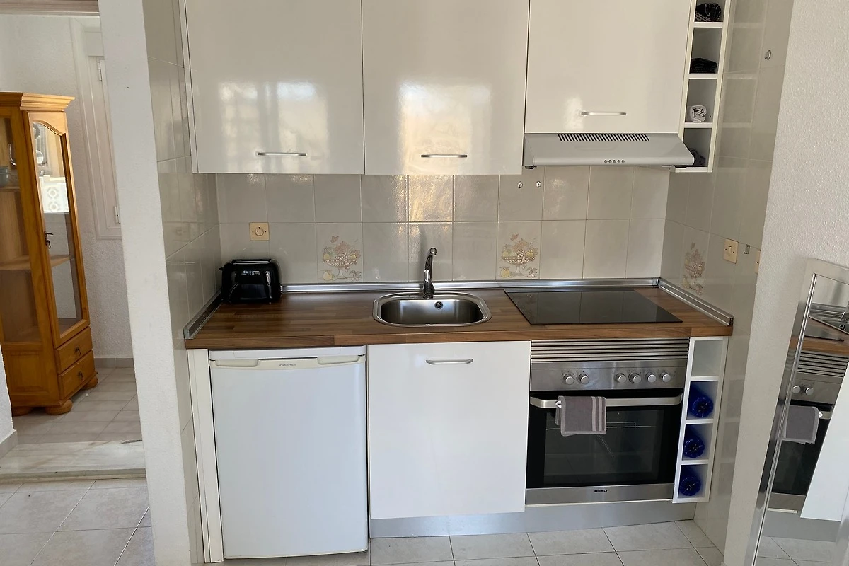 Die voll ausgestattete Küche bietet Ihnen die Möglichkeit, Ihre Lieblingsgerichte zuzubereiten. Sie verfügt über die alltäglichen Kochutensilien und Geschirr und einem Backofen.