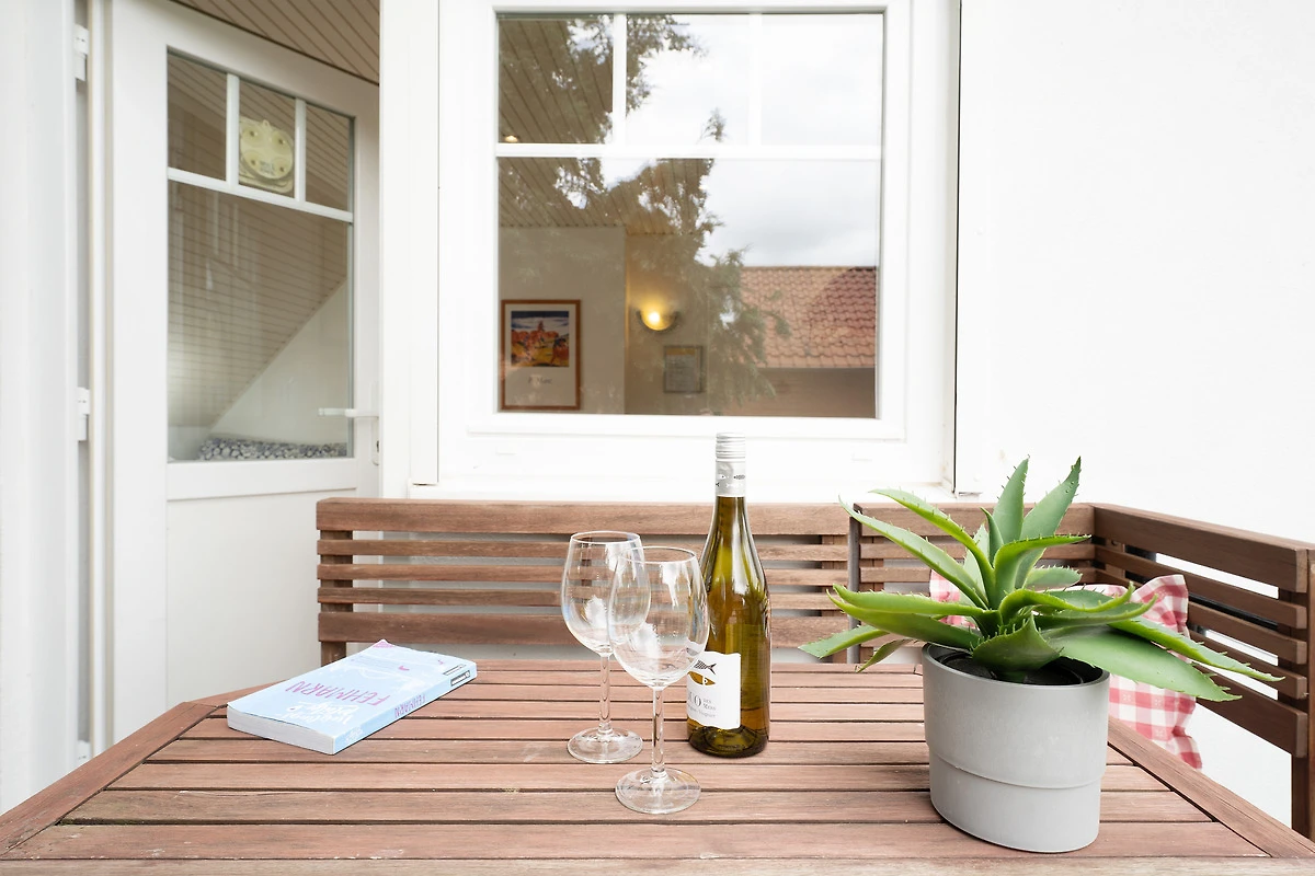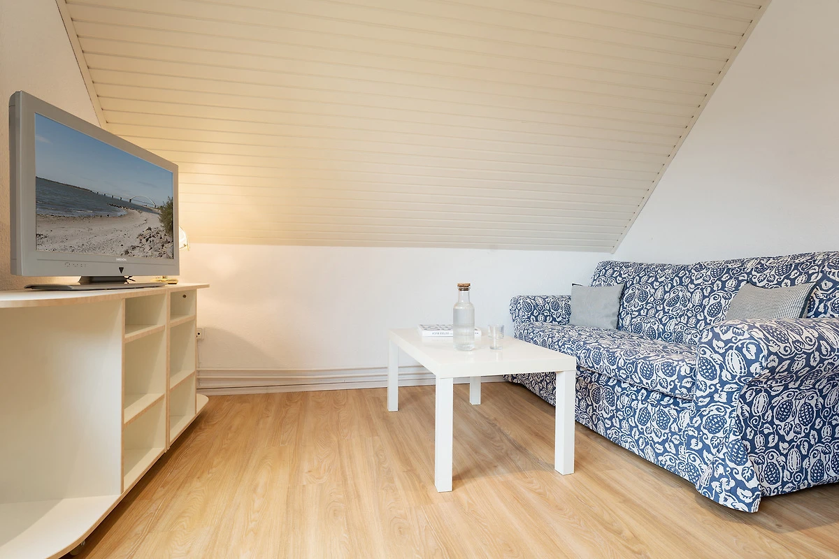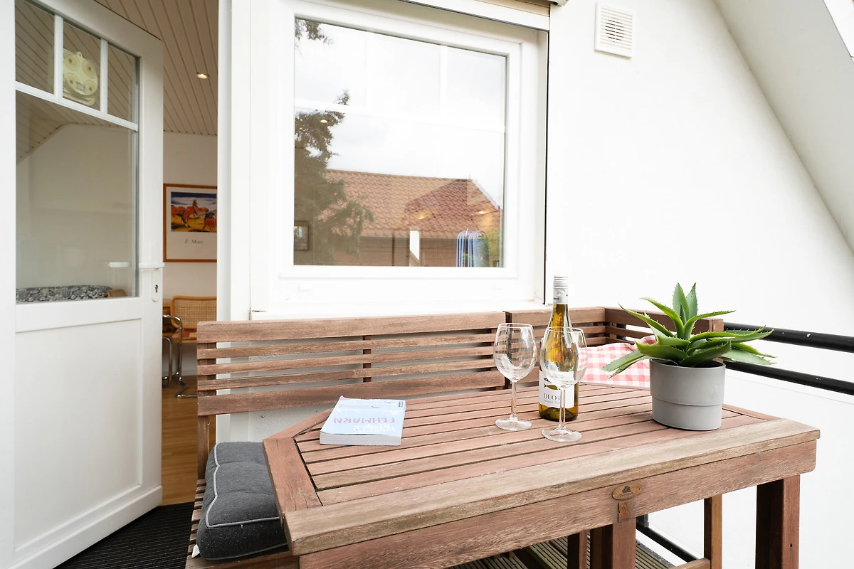 Willkommen in Ihrer gemütlichen Ferienunterkunft auf Fehmarn! Der Wohnbereich überzeugt mit einem Fernseher und komfortablen Sofa für entspannte Abende. Die grossen Fenster lassen viel Licht und klare Seeluft herein – ideal zum Durchatmen und Erholen. Auf dem möblierten Balkon geniessen Sie die frische Ostseeluft und entspannen in der geschützten Atmosphäre. Ein Kohlegrill steht bereit.