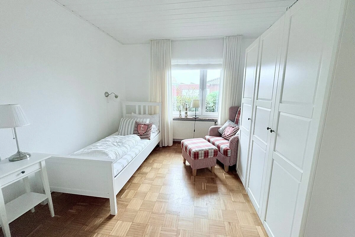 Unser Ferienhaus Norderneyhus bietet Ihnen alles, was Sie für einen erholsamen Aufenthalt benötigen. Mit zwei gemütlichen Schlafzimmern ist ausreichend Platz für die ganze Familie. Das Hauptschlafzimmer verfügt über ein grosses Doppelbett, während das zweite Schlafzimmer mit zwei Einzelbetten ausgestattet ist perfekt für flexible Schlafarrangements.