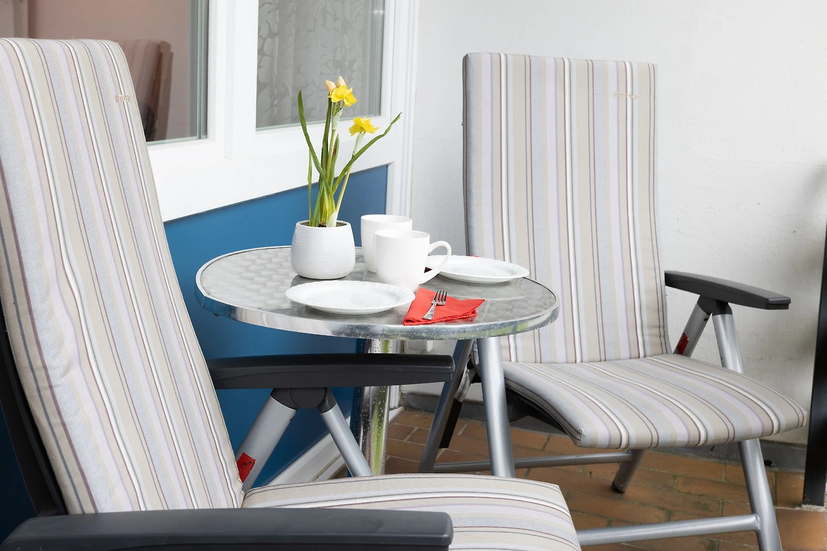 • Balkon mit Sitzgelegenheit - perfekt für den ersten Kaffee am Morgen oder ein Glas Wein am Abend