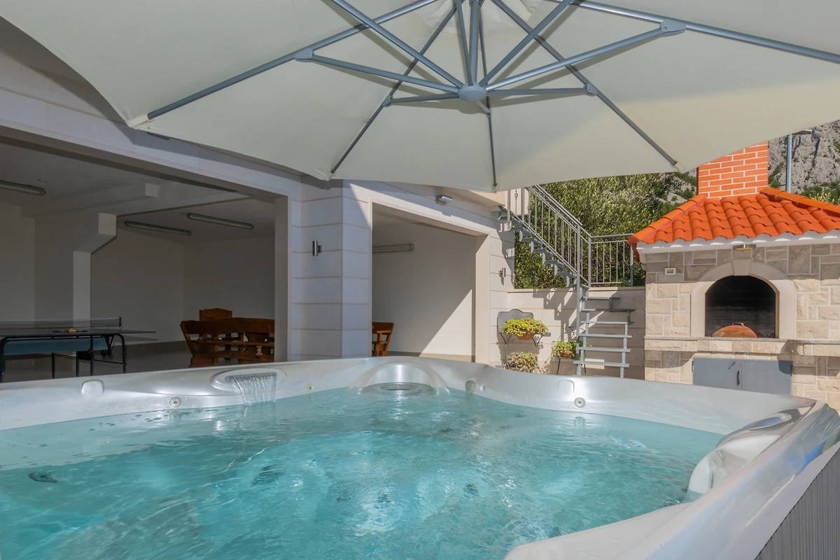 Zusätzliche Annehmlichkeiten umfassen Klimaanlage, WLAN, Satellitenfernsehen, ein Bügeleisen und einen eigenen Kinderbereich. Für absolute Entspannung können die Gäste die hauseigene Spa-Anlage und den Whirlpool geniessen. Die Villa befindet sich in einer ruhigen ländlichen Umgebung, nur 3 km von einem Sandstrand und 4 km von der Stadt Makarska entfernt, mit einem Supermarkt in der Nähe.