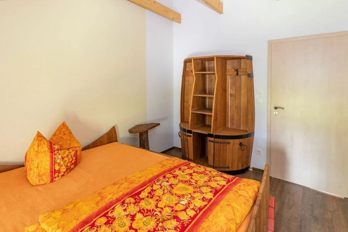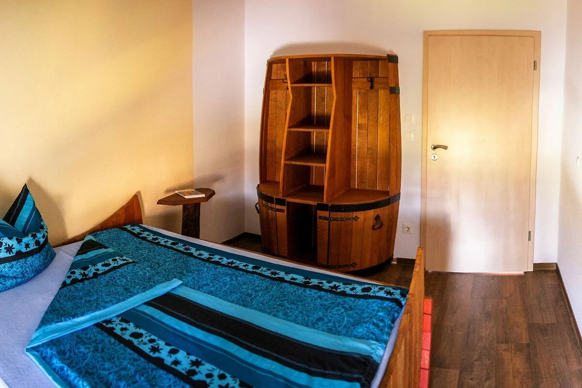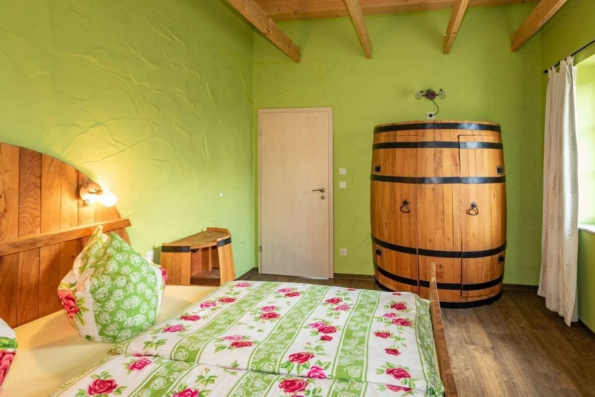 Schlafzimmer mit Schlafen mal anders im Weinfass, in allen Betten sind hochwertige Matrazen und die Doppel-Betten sind 2,00 m lang und 1,80 m breit; Kleiderschrank