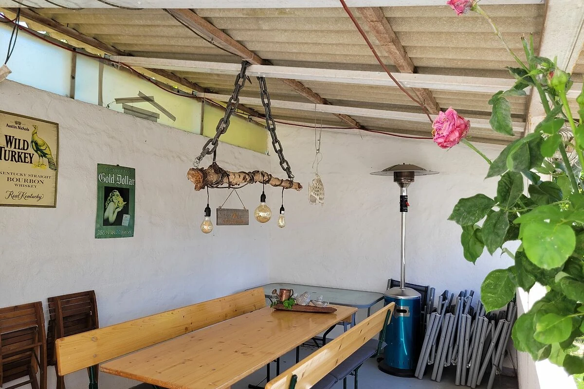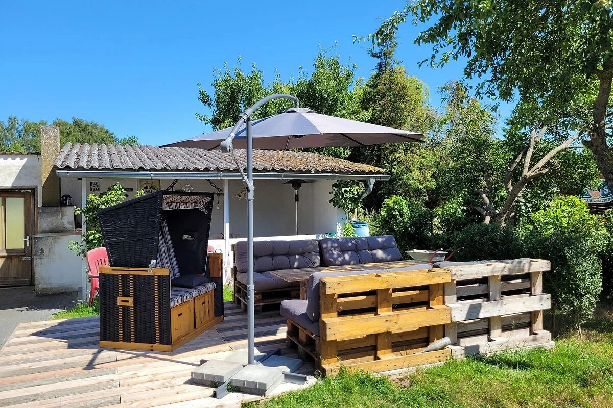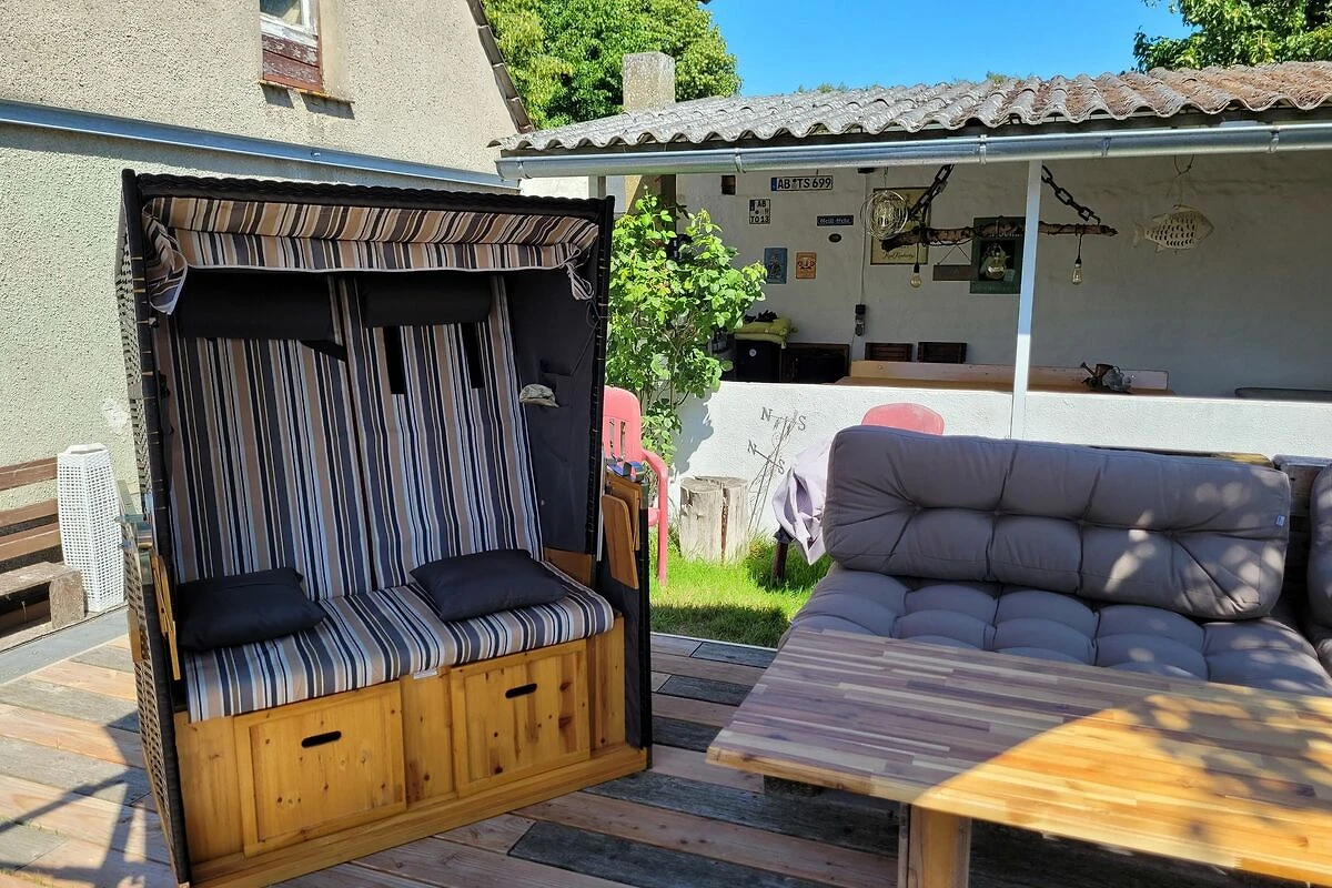 Im Garten steht eine gemütliche Terrasse mit Sitzmöbel und ein Strandkorb zur Verfügung. Sollte das Wetter mal etwas ungemütlich werden, kann zusätzlich eine überdachte Terrasse genutzt werden. Für Grillabende steht ein grosser Grill bereit.