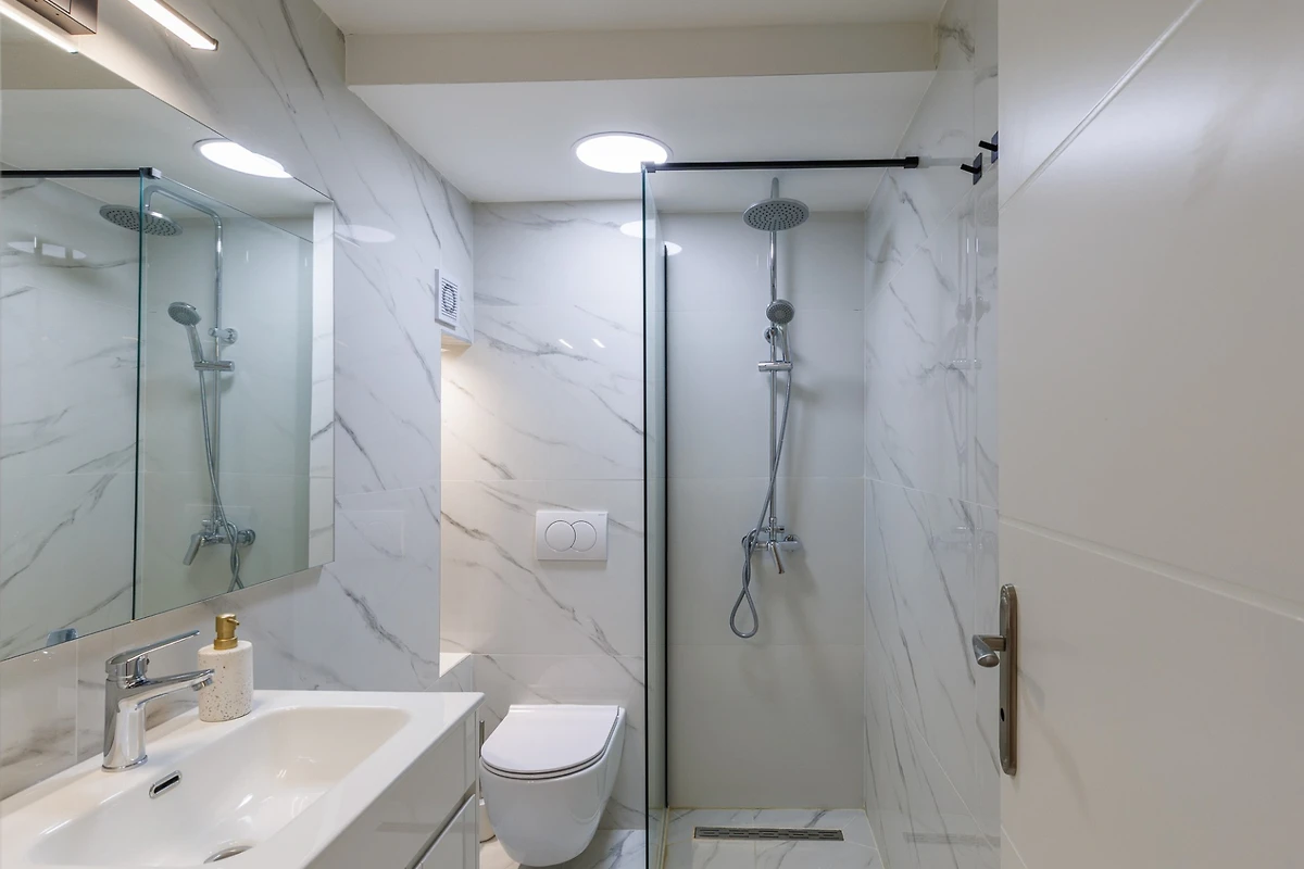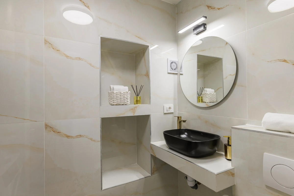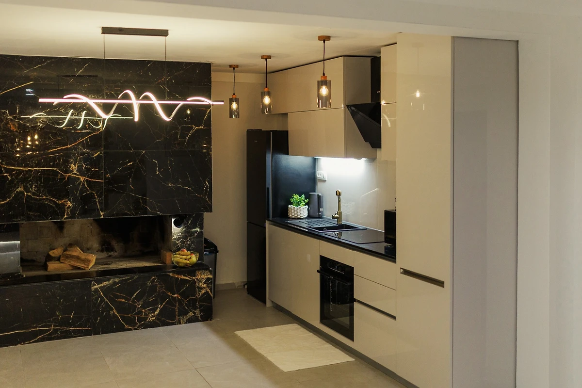 Die voll ausgestattete amerikanische Küche ist ein Traum für kulinarische Enthusiasten und verfügt über modernes Induktionskochen, eine umfassende Auswahl an Geräten, darunter Kühlschrank, Gefrierschrank, Geschirrspüler, Ofen, Mikrowelle, Kaffeemaschine und das gesamte notwendige Küchengeschirr. Praktische Annehmlichkeiten wie Waschmaschine und Trockner werden ebenfalls bereitgestellt.