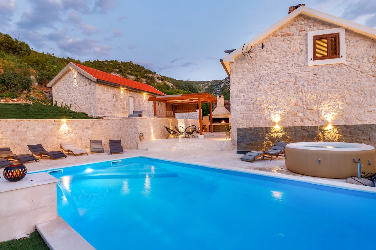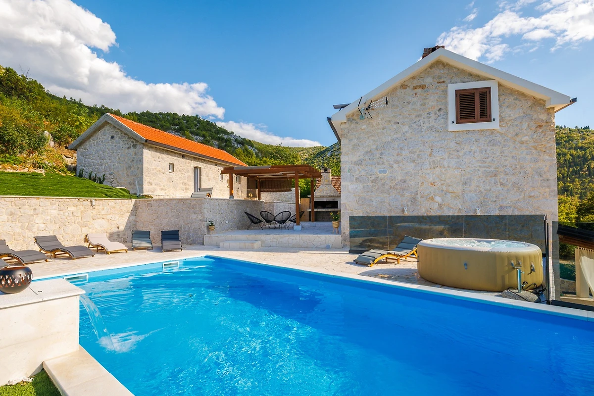 Der Standort bietet atemberaubende Ausblicke auf Berge, den Pool und den Garten. Nahegelegene Attraktionen umfassen einen Sandstrand 13 km entfernt, die Stadt Metkovic 10 km entfernt und einen Lidl-Supermarkt in leichter Reichweite. Die Immobilie ist haustierfreundlich und erlaubt ein Tier und befindet sich in einer ruhigen, ländlichen Umgebung.