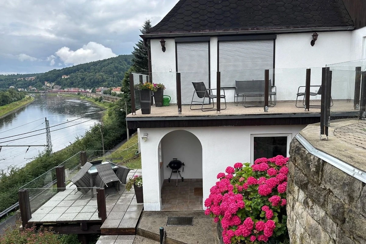 Ferienhaus Elbblick kleine Wohnung , mit 40 qm für maximal 3 Erwachsene.Im ganzen Nichtraucher Haus ist kostenfreies WLAN vorhanden.Diese Wohnung mit eignem Eingang und Vorraum mit Garderobehat einen 10m² Schlafzimmer mit Doppelbett Kommodeund grossem Schrank sowie Wohnzimmer von 18 m² mit einem Schlafsofamit einer Liegefläche von 2 m x 1,40 m ,einem grosser Esstischmit 4 Stühlen, Smart TV .und Blue-Ray-Player .In dieser Etage befindet sich eine kleine Küchemit guter Ausstattung wie ein Doppelinduktionskochfeld, Spüle,Kaffeemaschine, Toaster, Kühlschrank, Wasserkocher. sowieein Bad mit ebener Regenwasserdusche, kleinem Waschbecken und Toilette .Das Haus liegt am Elbhang und der Zugang erfolgt über einenWeg der teiweise ohne Geländer ist.Eine Verbindung zur Wohnung 1 besteht über einen trennbaren Aufgang.Falls sie mit mehr Personen reisen möchten können sie die Wohnung 1 mit buchen und das gesamte Haus mit bis zu 8 Personen buchen.