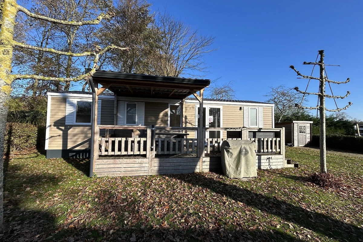 Das Chalet hat eine gemütliche Holzveranda mit Loungemöbeln und einem Grill.