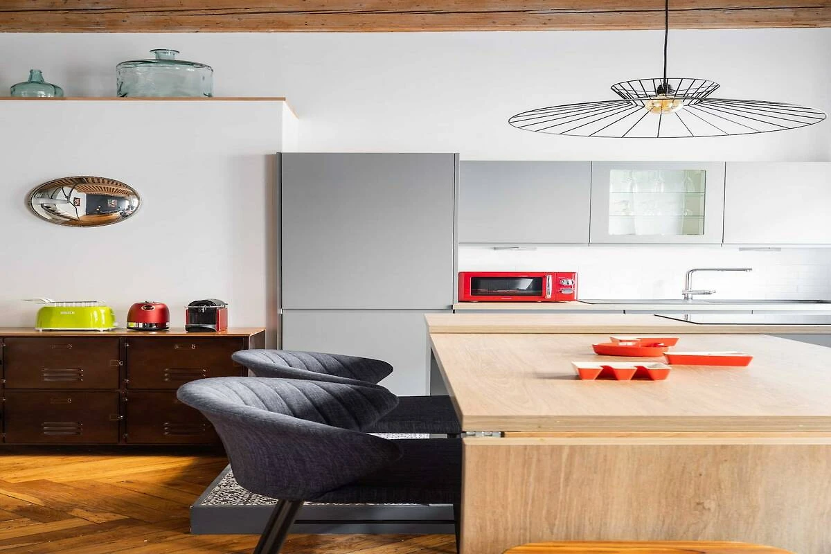 Stilvolles, über 100 m² großes Apartment mit viel Charakter, darunter Sichtbalken. Das Apartment verfügt über 4 Schlafzimmer mit jeweils eigenem Bad.