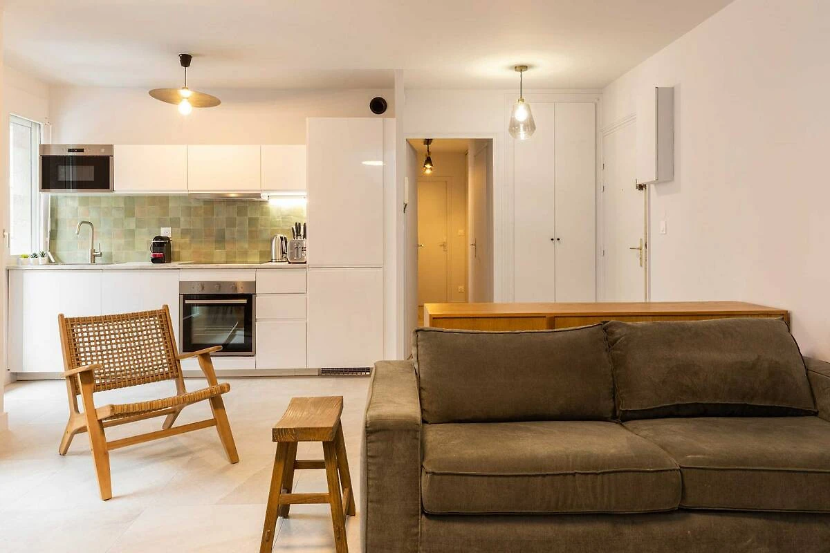 Charmante Wohnung mit großem, hellem Wohnzimmer, komplett renoviert. Die Wohnung befindet sich im ersten Stock eines schönen Gebäudes und verfügt über einen kleinen Balkon.