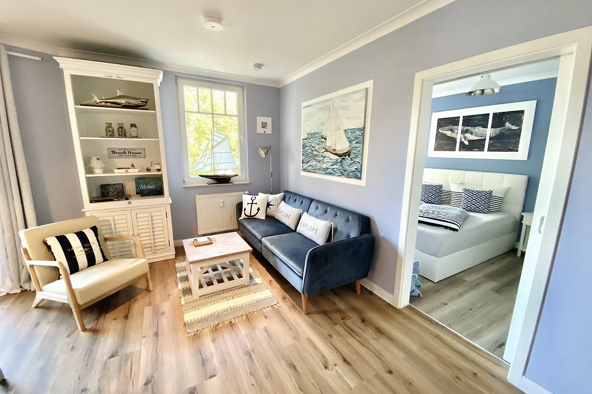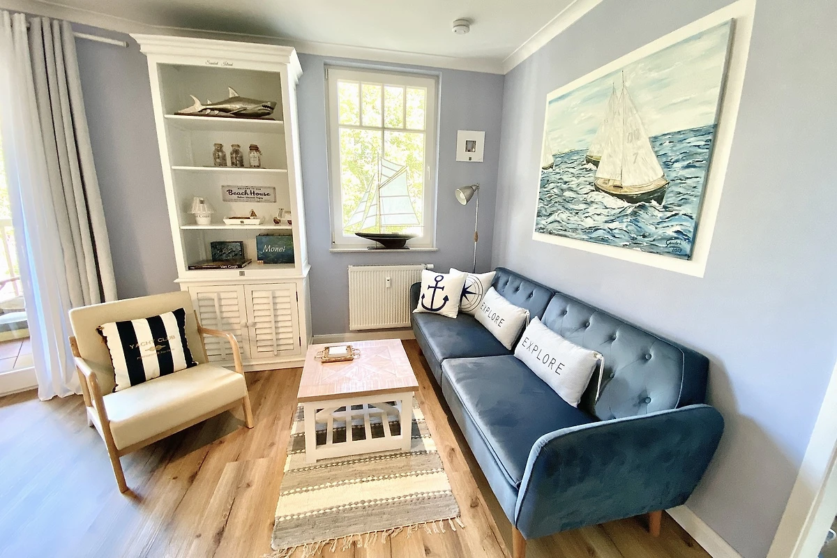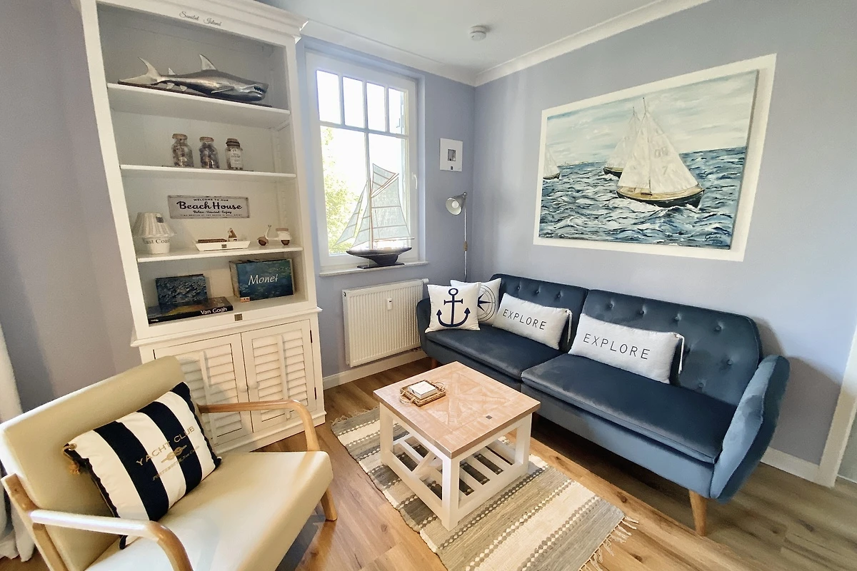 An den hellen, mit Liebe zum Detail, harmonisch eingerichteten Wohnraum mit Meerblick,