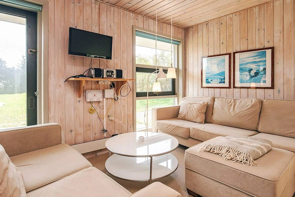 Küche(Kochherd(2 Kochplatten), Kaffeemaschine, Backofen, Mikrowelle, Kühlschrank(+ Gefrierfach)), Wohn-/Schlafzimmer(TV, CD-Spieler), Schlafzimmer(2x Etagenbett), Schlafzimmer(2x Einzelbett), Badezimmer(Waschbecken, Dusche, Toilette), Heizung(elektrisch), Terrasse, Gartenmöbel