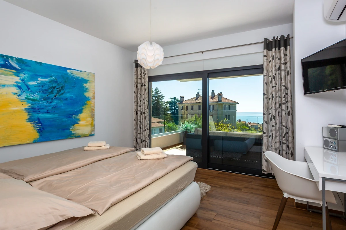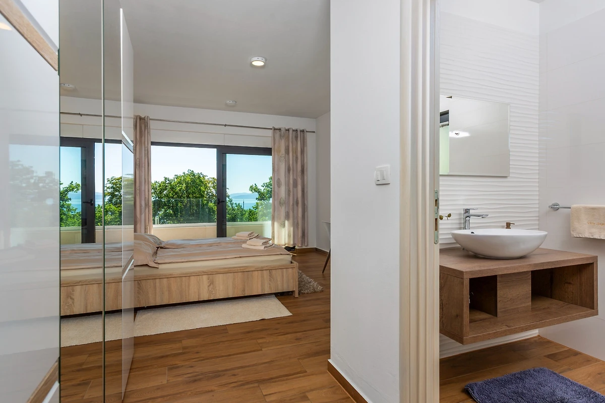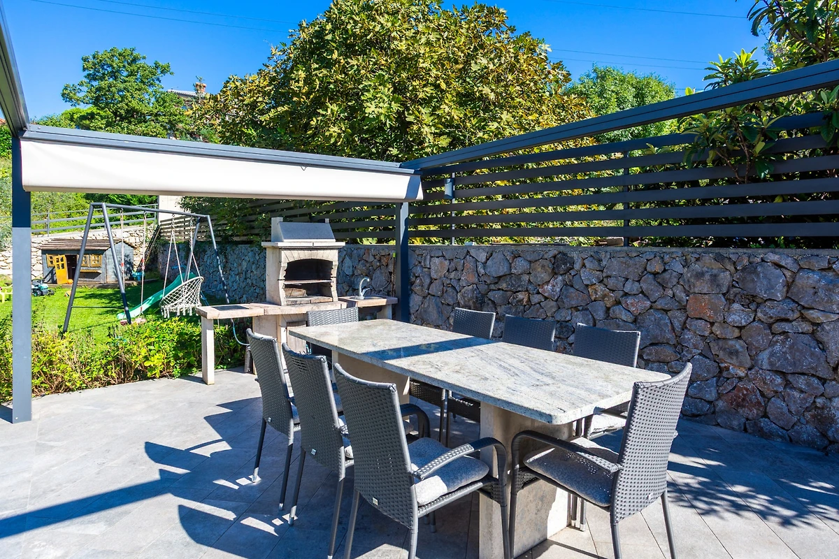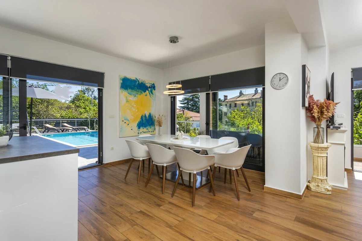 Villa Angello bietet einen entzückenden Rückzugsort für Familien und Paare, die ein komfortables und gut ausgestattetes Ferienhaus in Matulji suchen. Diese geräumige 160m² grosse Immobilie beherbergt bequem bis zu 8 Gäste in 4 wunderschön gestalteten Schlafzimmern und gewährleistet ausreichend Platz und Privatsphäre für alle.