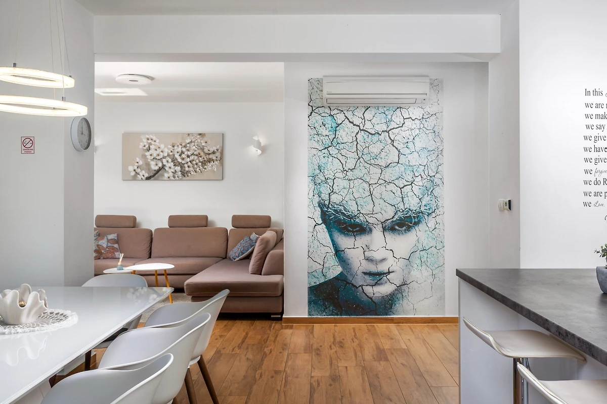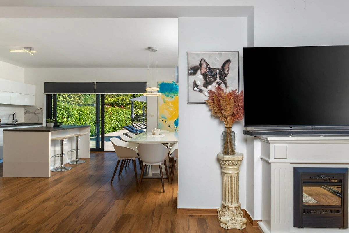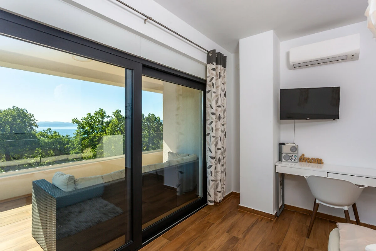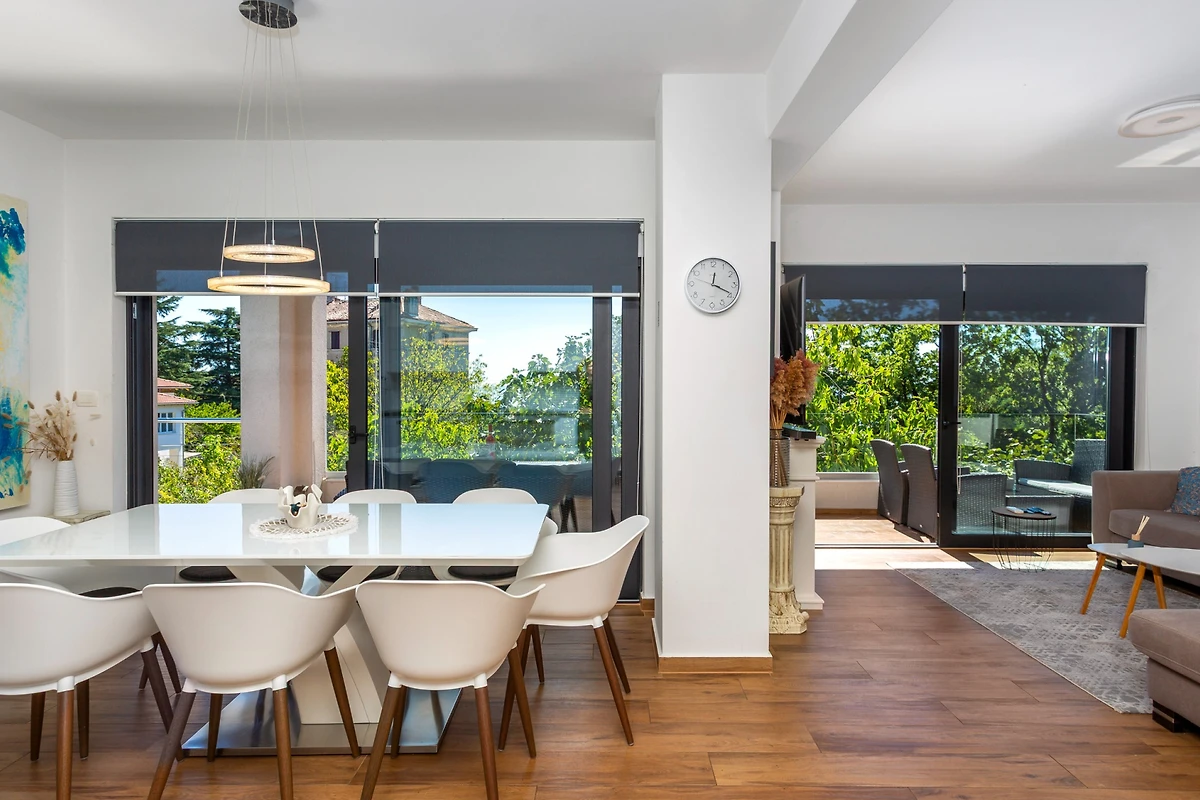 Villa Angello bietet einen entzückenden Rückzugsort für Familien und Paare, die ein komfortables und gut ausgestattetes Ferienhaus in Matulji suchen. Diese geräumige 160m² grosse Immobilie beherbergt bequem bis zu 8 Gäste in 4 wunderschön gestalteten Schlafzimmern und gewährleistet ausreichend Platz und Privatsphäre für alle.