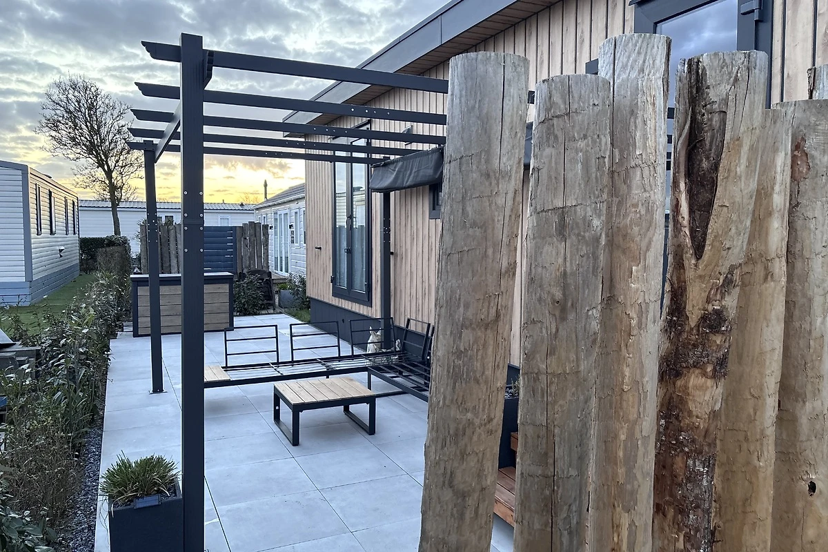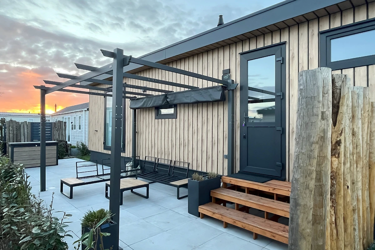 Nur wenige Gehminuten zum Nordseestrand (ca. 700 m Fußweg) – genießen Sie entspannte Familienferien in unserem Premium Chalet auf dem beliebten Julianahoeve.