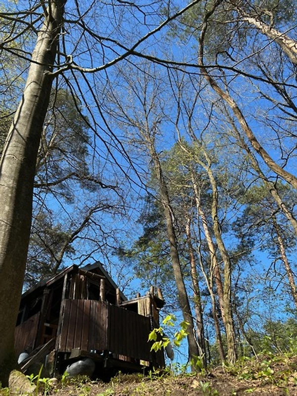 Jedenfalls gehoert ja beim Gedanken strand auch eine Stranddusche dazu...diese wurde nun fertigestellt (mit Blick auf den See respektive in die Baumkronen).