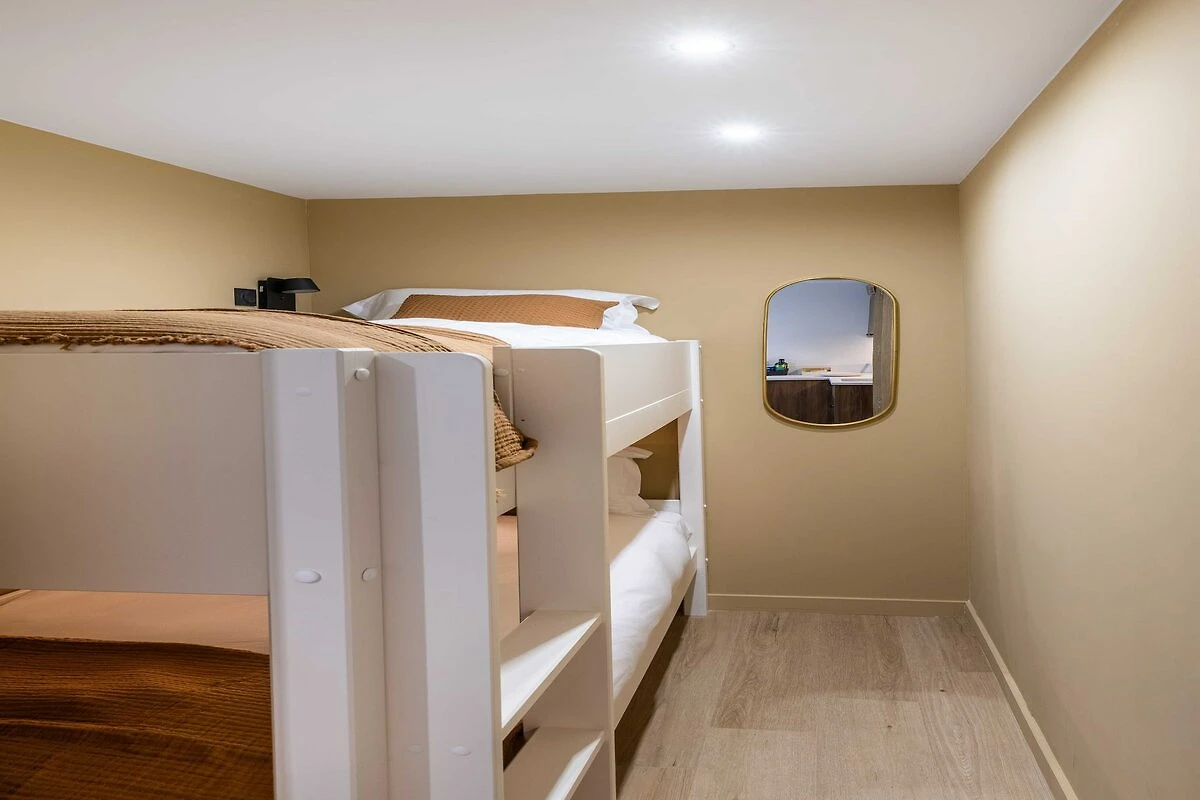 In der 7. Etage: (Wohnzimmer(TV, Esstisch), Küche(Herd, Kochplatte, Wasserkocher, Toaster, Dunstabzugshaube, Kaffeemaschine, Mikrowelle, Kühlschrank, , , Wine glasses), Schlafzimmer(Queen Bed), Schlafzimmer(Etagenbett), Badezimmer(, Dusche, Toilette, Föhn, Handtücher/Bettwäsche (inklusive), , , , Cleaning products))