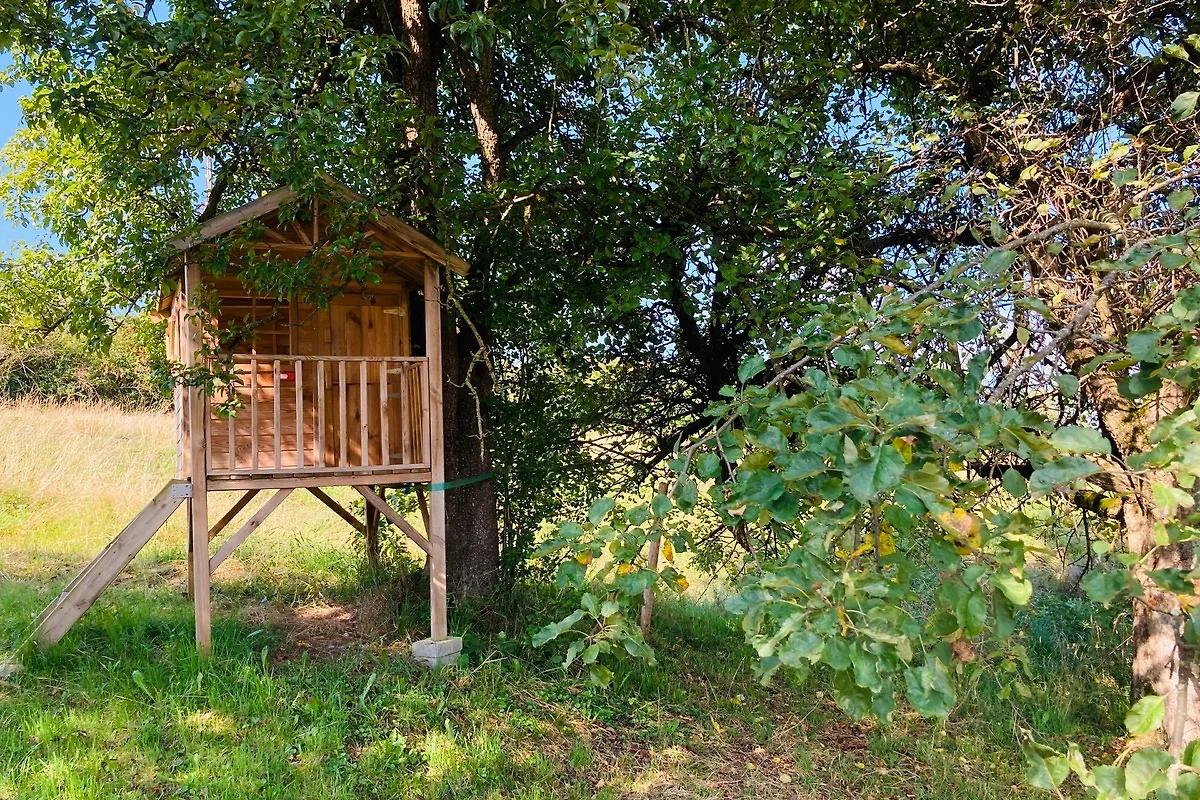 Draussen warten ein Kinderspielplatz, Sonnenplätze, eine Hütte zum Spielen und ein Lagerfeuerplatz für lange Abende unter dem Sternenhimmel.