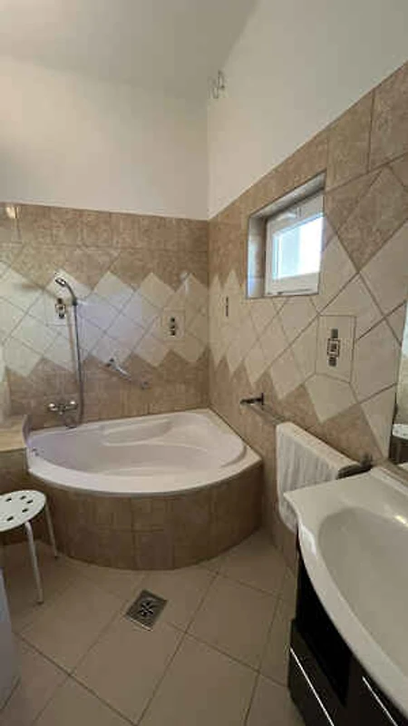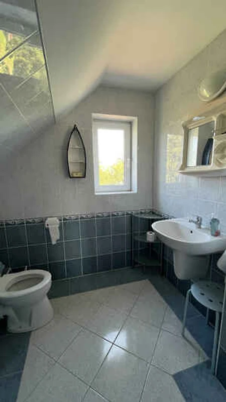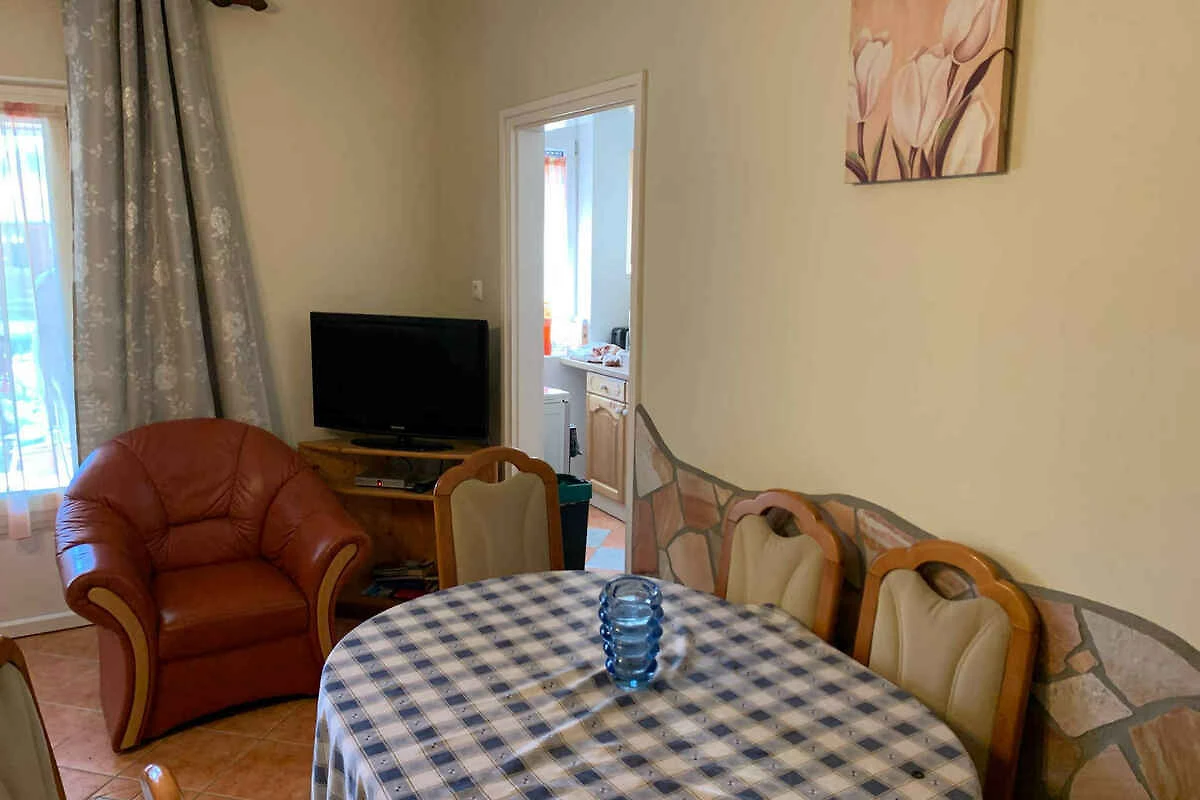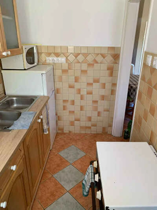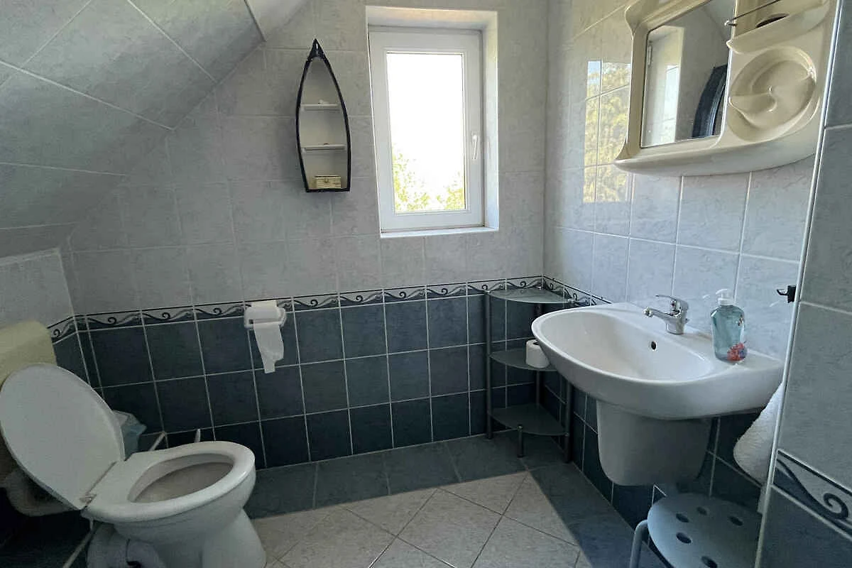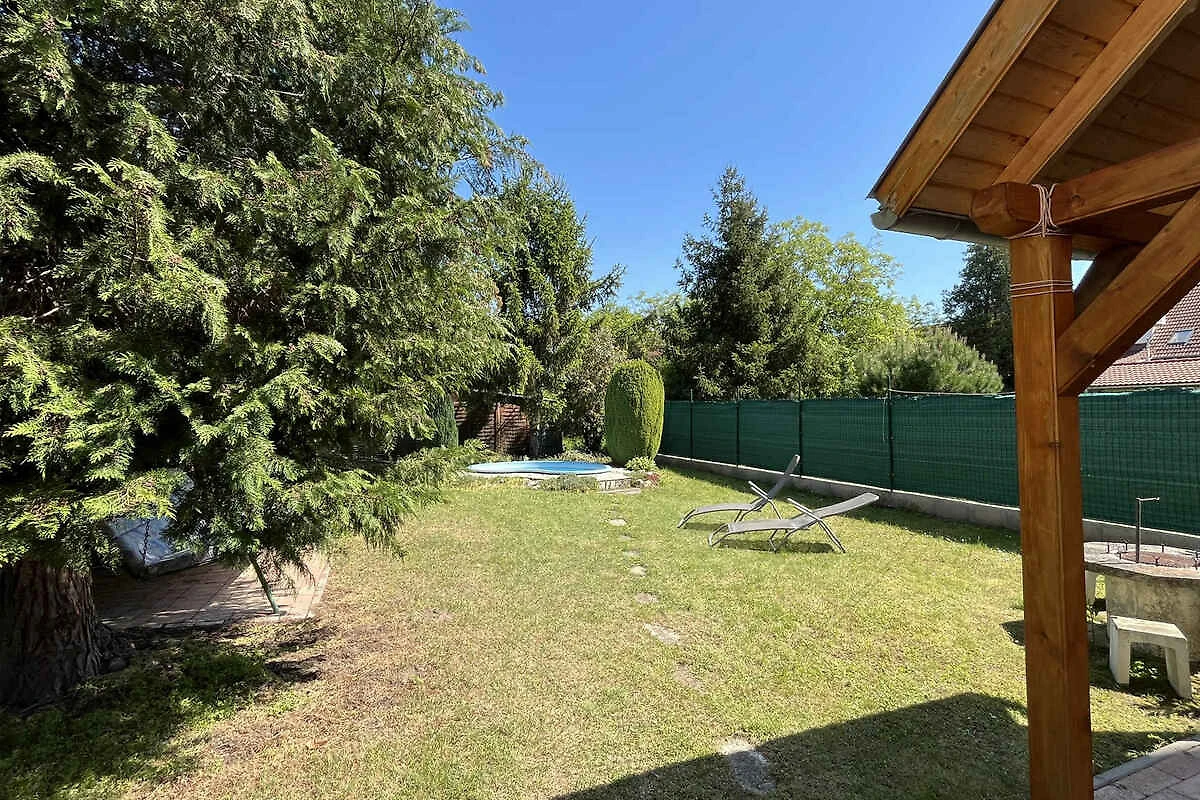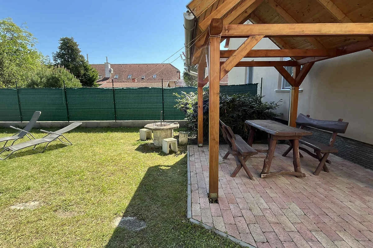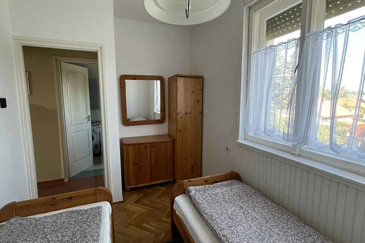 Balatonmáriafürdő. Das Ferienhaus befindet sich auf einem geschlossenen Gartengrundstück mit Wiese und Bäumen, von einem Zaun begrenzt. Der Vermieter wohnt nicht im Haus oder auf dem Grundstück. Die Zufahrt erfolgt über eine Nebenstrasse (asphaltiert). Parkplatz (für 2 Pkws) auf dem Grundstück.