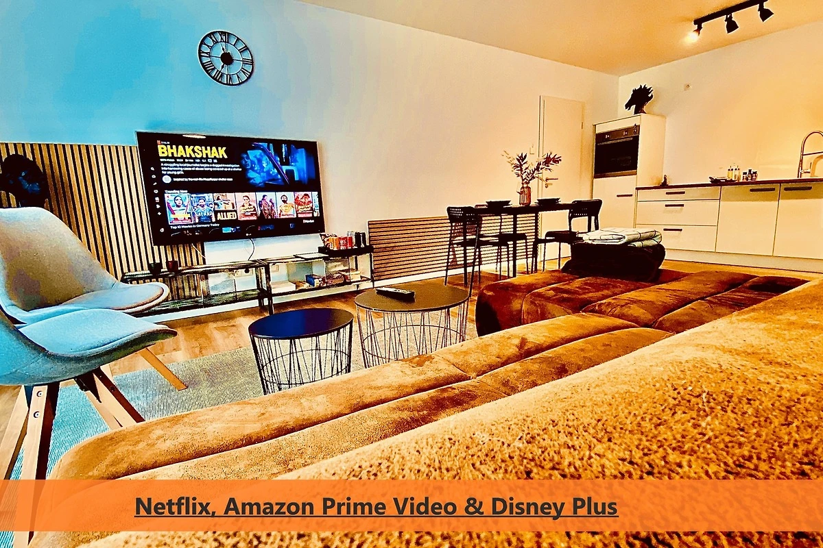 Geniessen Sie auf den 65 Zoll Fernseher "Disneyabende" oder vielleicht sogar eine Netflix-Serie mit der ganzen Familie, die Streamingdienste sind im Preis inbegriffen. Dreifach verglaste Bodentiefe Fenster im Wohnzimmer und Schlafzimmer (beide 200x216), Platz für bis zu fünf Personen, daher sehr Familienfreundlich, Einkaufsmöglichkeiten befinden sich fussläufig.