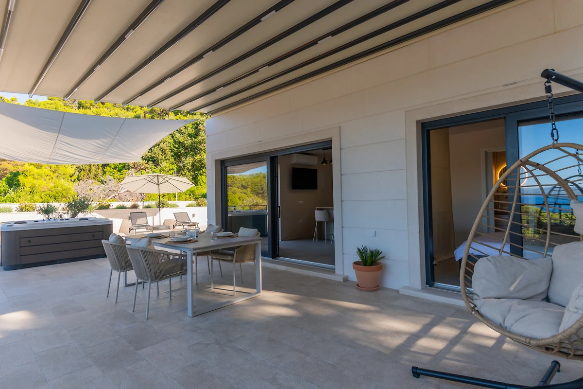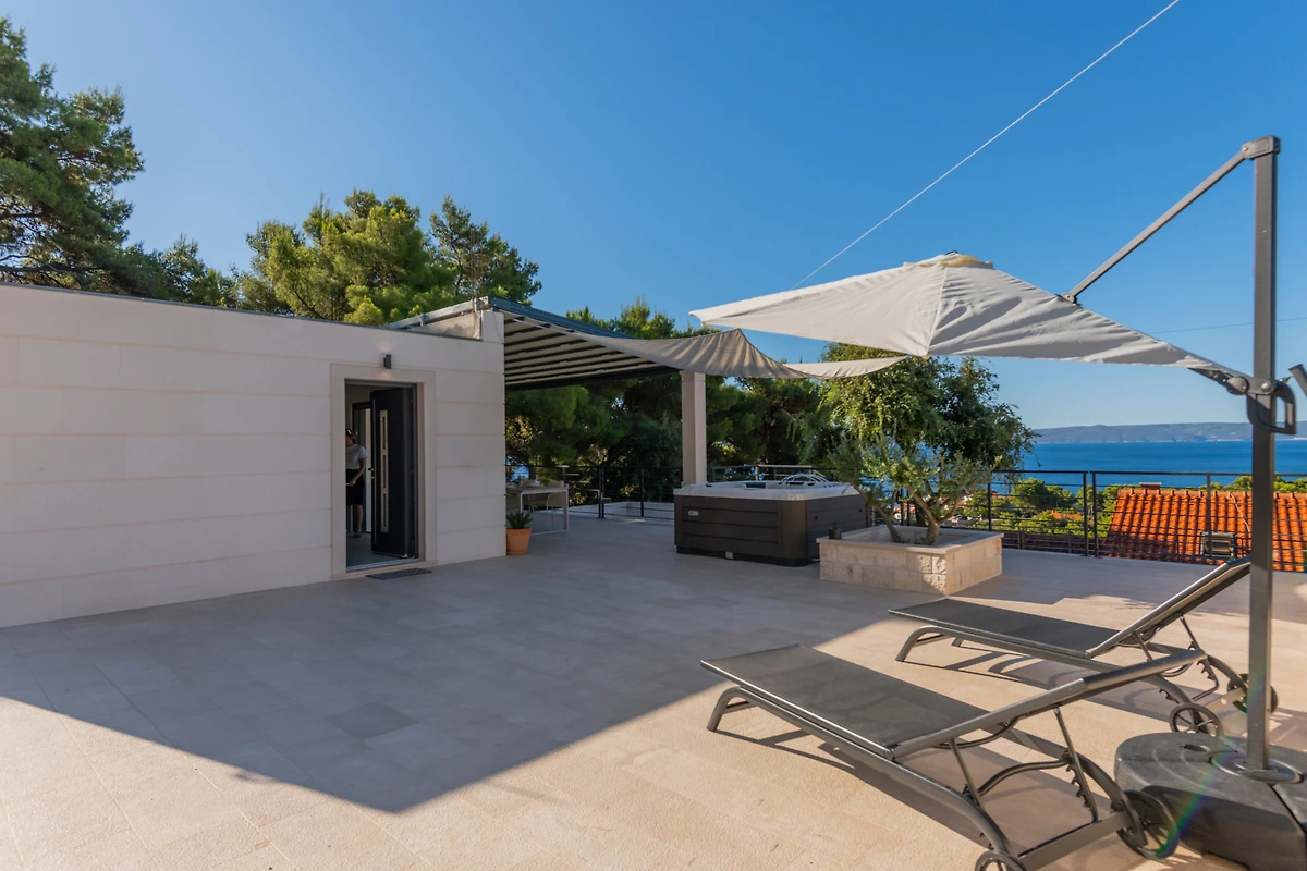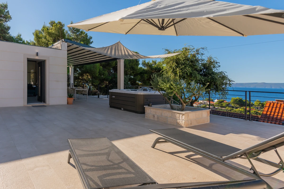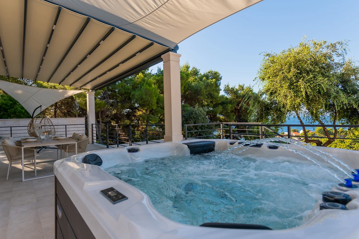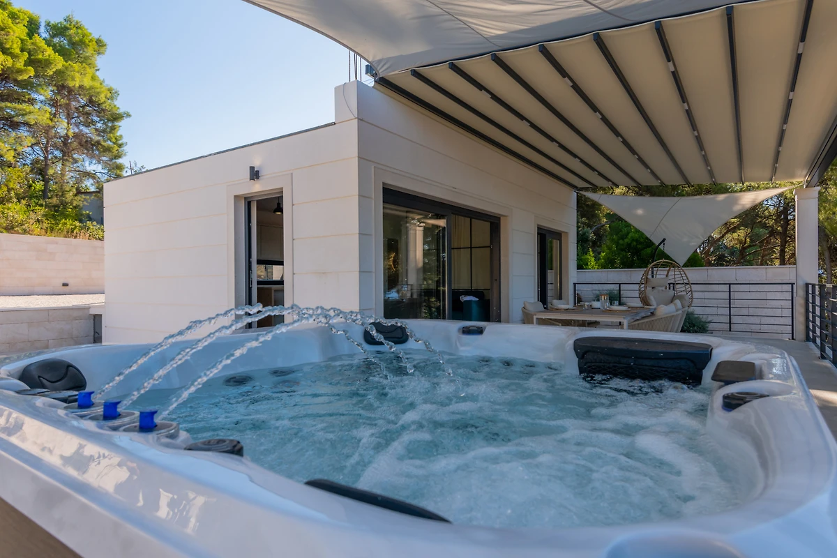 Ein besonderes Highlight ist der private Whirlpool, perfekt zum Entspannen nach einem Tag voller Erkundungen. Die Villa verfügt über ein Badezimmer mit Dusche und sorgt so für Komfort und Bequemlichkeit. Zwei private Aussenparkplätze stehen direkt auf dem Grundstück zur Verfügung.