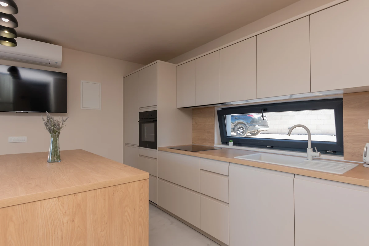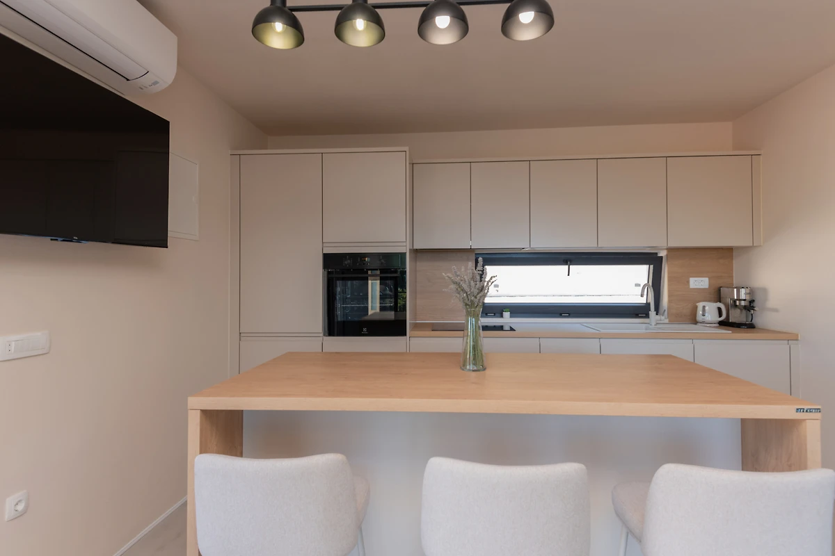 Die Villa bietet einen komfortablen Wohnbereich von 40 Quadratmetern, eingebettet in ein geräumiges Grundstück von 600 Quadratmetern. Mit einem Queensize-Bett und einer modernen amerikanischen Küche bietet die Immobilie alle Essentials für einen erholsamen Aufenthalt. Die vollständig ausgestattete Küche umfasst eine Induktionskochplatte, Kühlschrank, Gefrierschrank, Backofen, Mikrowelle, Geschirrspüler, Kaffeemaschine und komplettes Küchengeschirr.