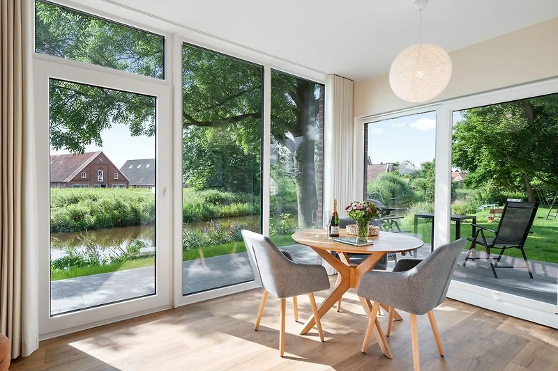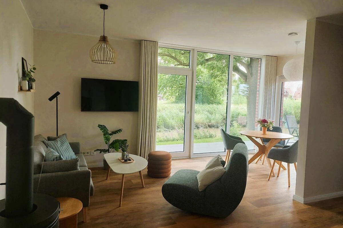 Die 56 qm grosse Ferienwohnung Lüheufer hat ein geräumiges Schlafzimmer und bietet Platz für 2 Personen + evt. 1 Kleinkind. Die im Sommer 2025 fertiggestellte Fewo liegt im Erdgeschoss mit fantastischem Blick auf die in wenigen Metern vorbeifliessende Lühe. Sie ist modern und gemütlich eingerichtet, ist voll ausgestattet und hat einen separaten Eingang mit Terrasse. In der kalten Jahreszeit sorgt der Kaminofen für zusätzliche Gemütlichkeit und Wärme.