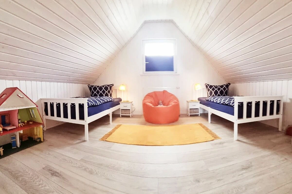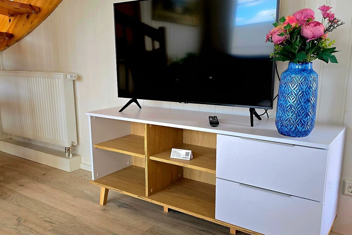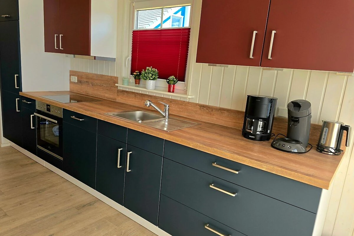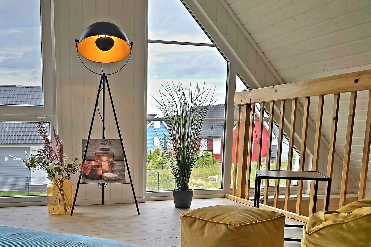 Ein Zuhause fern von zuhause. Das hochwertige Ferienhaus liegt gut eingebettet im Hafendorf. Das Haus ist lichtdurchflutet mit einer offenen Galerie im Obergeschoss über dem Wohnbereich. Der Giebel ist mit Panoramascheiben vollständig verglast. Auf der Terrasse vor diesem Giebel können Sie den Garten geniessen. Erleben Sie den Auf- und Untergang der Sonne in beeindruckender Weise. Die Einrichtung des Hauses lässt die Laune höher schlagen. Farben dominieren und geben Eintönigkeit keine Chance. Lassen Sie sich einfangen von dem Charme kräftiger Farben im Kontrast zu hellen Tönen.