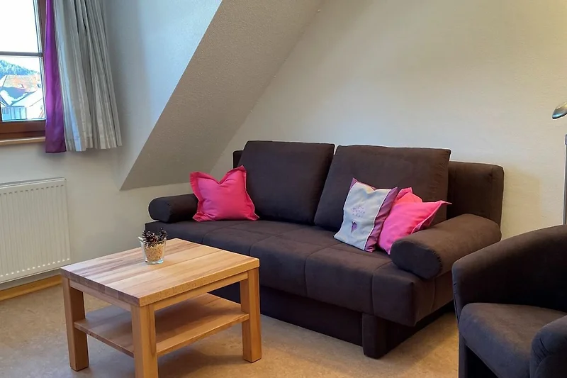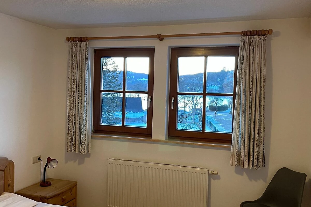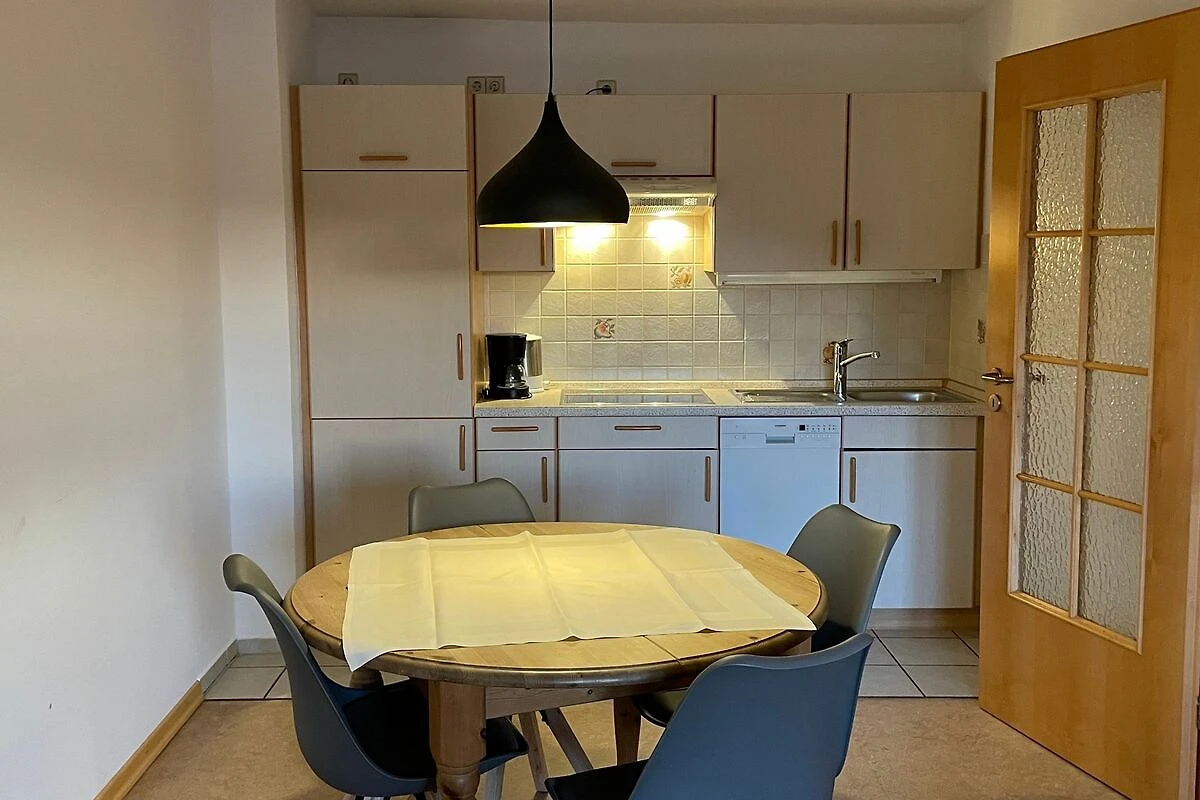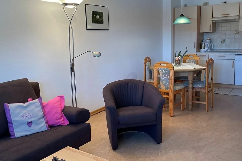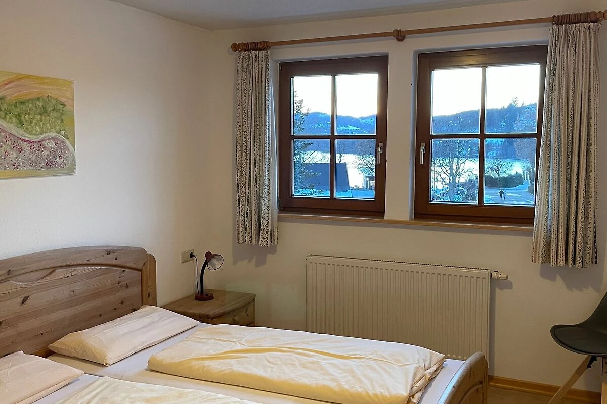 Gemütliche im Besonderen Allergiker geeignete Ferienwohnung in Holz-Lehmbau ohne Balkon mit Blick zum See. 45qm mit Vollholzmöbel aus Kiefer und Linoleum Boden ausgestattet machen das Wohnen angenehm. Die Wohnung verfügt über eine Eingangsdiele mit Zugang zum Badezimmer mit Dusche und WC, zum Schlafzimmer mit Doppelbett und zum Wohn-Essbereich mit Küchenzeile. Die Wohnung kann maximal mit 2 Erwachsenen und einem Kind bis 12 Jahre belegt werden.