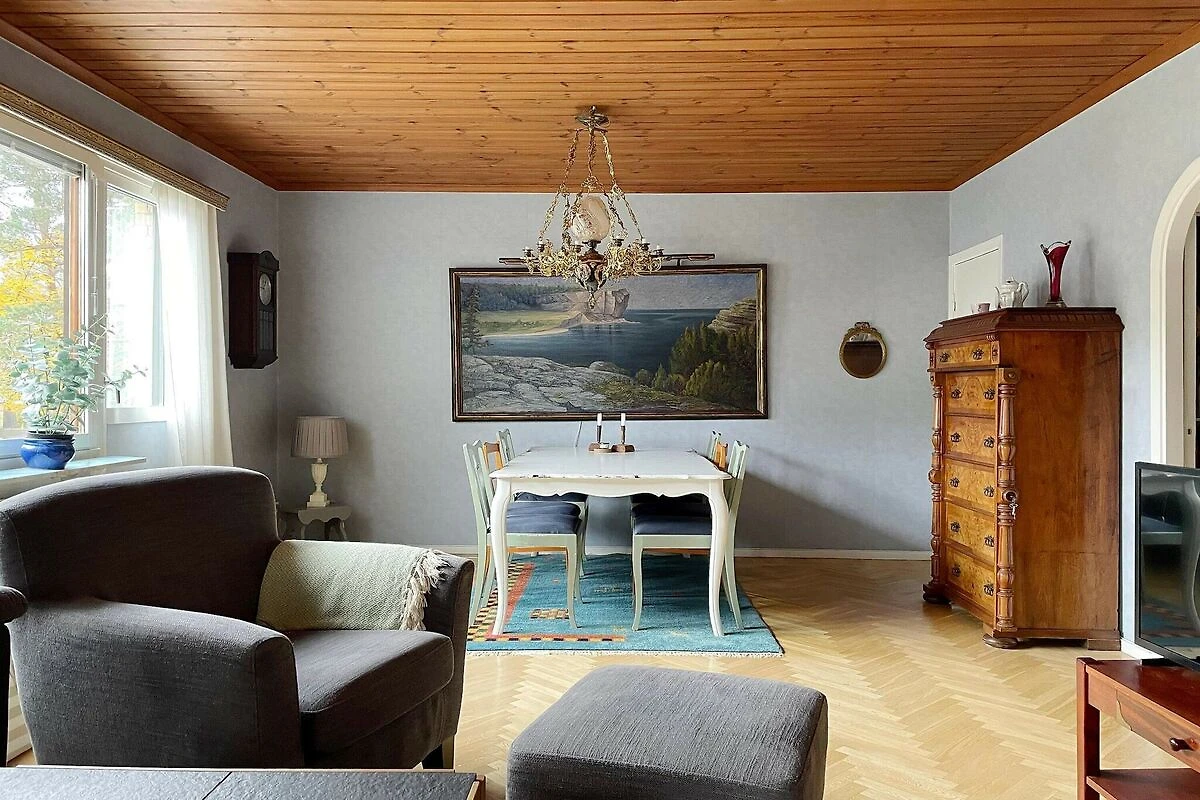 Küche(Kochherd(elektrisch), Kaffeemaschine, Spülmaschine, Kühl-/Gefrierkombination), Wohn-/Schlafzimmer(TV(schwedische Fernsehsender)), Schlafzimmer(Doppelbett, Balkon), Schlafzimmer(Einzelbett, Doppelbett), Schlafzimmer(Einzelbett), Badezimmer(Waschbecken, Dusche, Toilette), Badezimmer(Waschbecken, Toilette), Garten, Gartenmöbel, Parkplatz, Erdwärme, Luft-Luft-Wärmepumpe , Luft-Wasser-Wärmepumpe