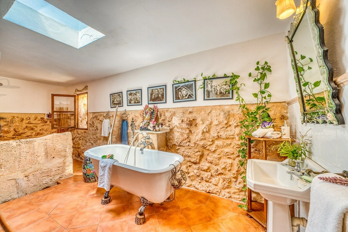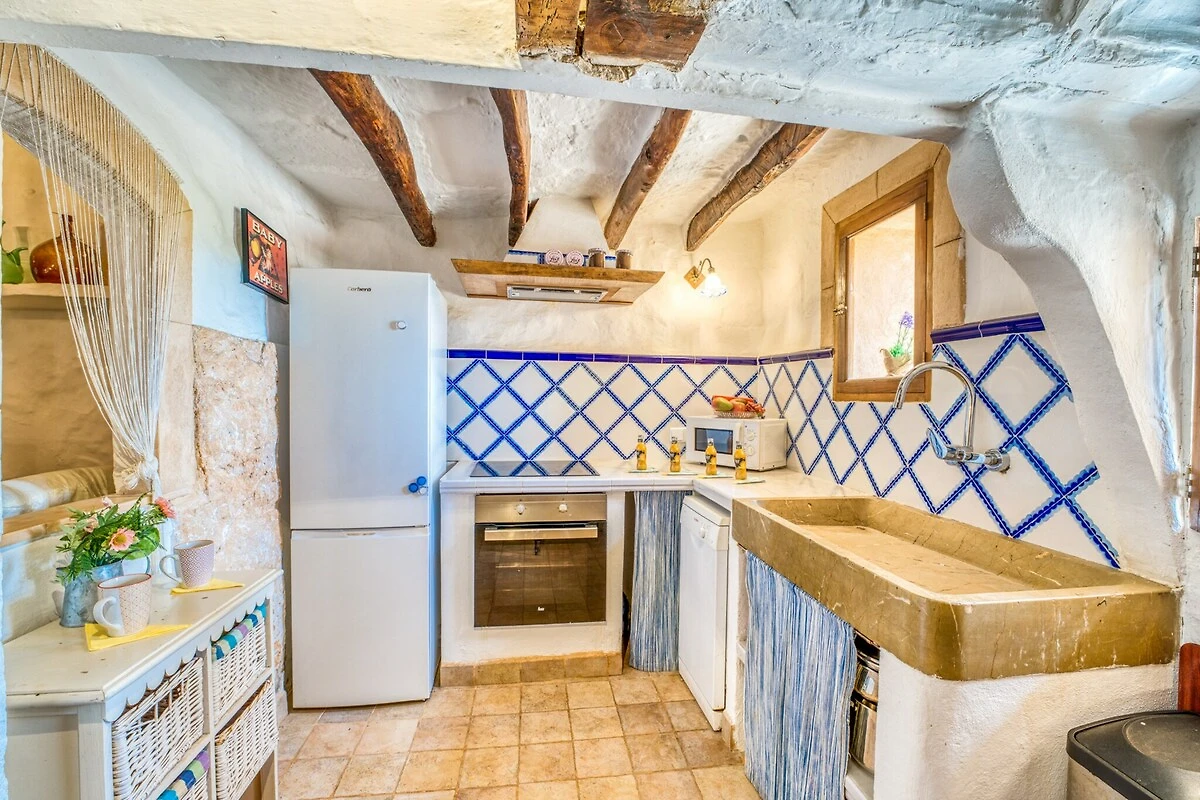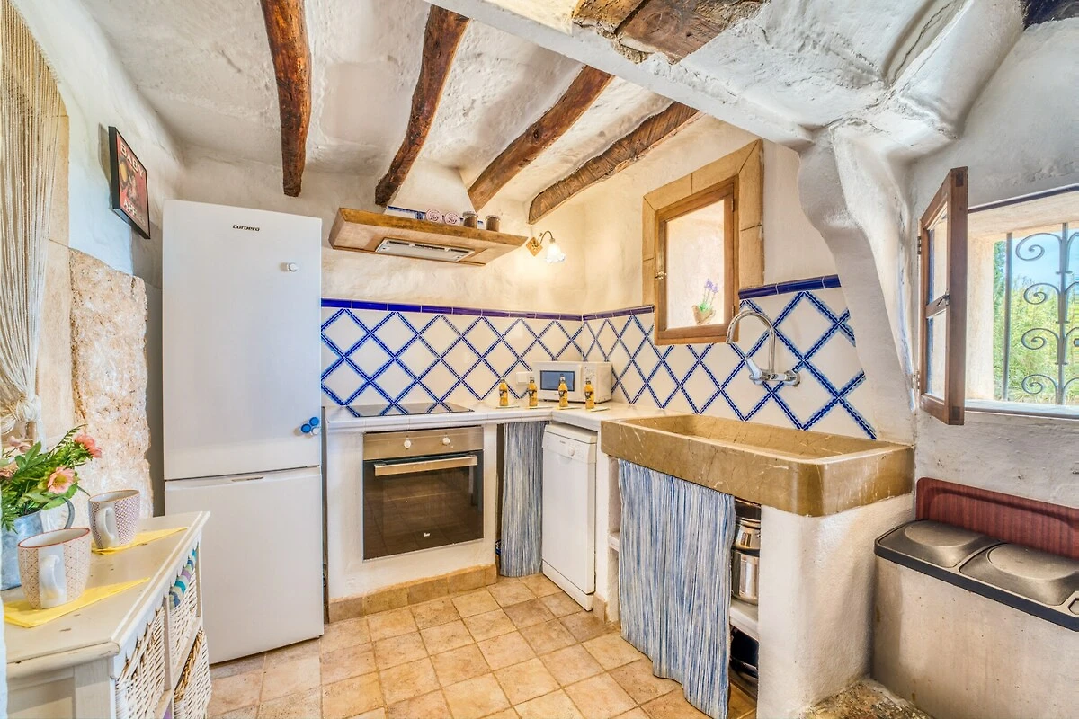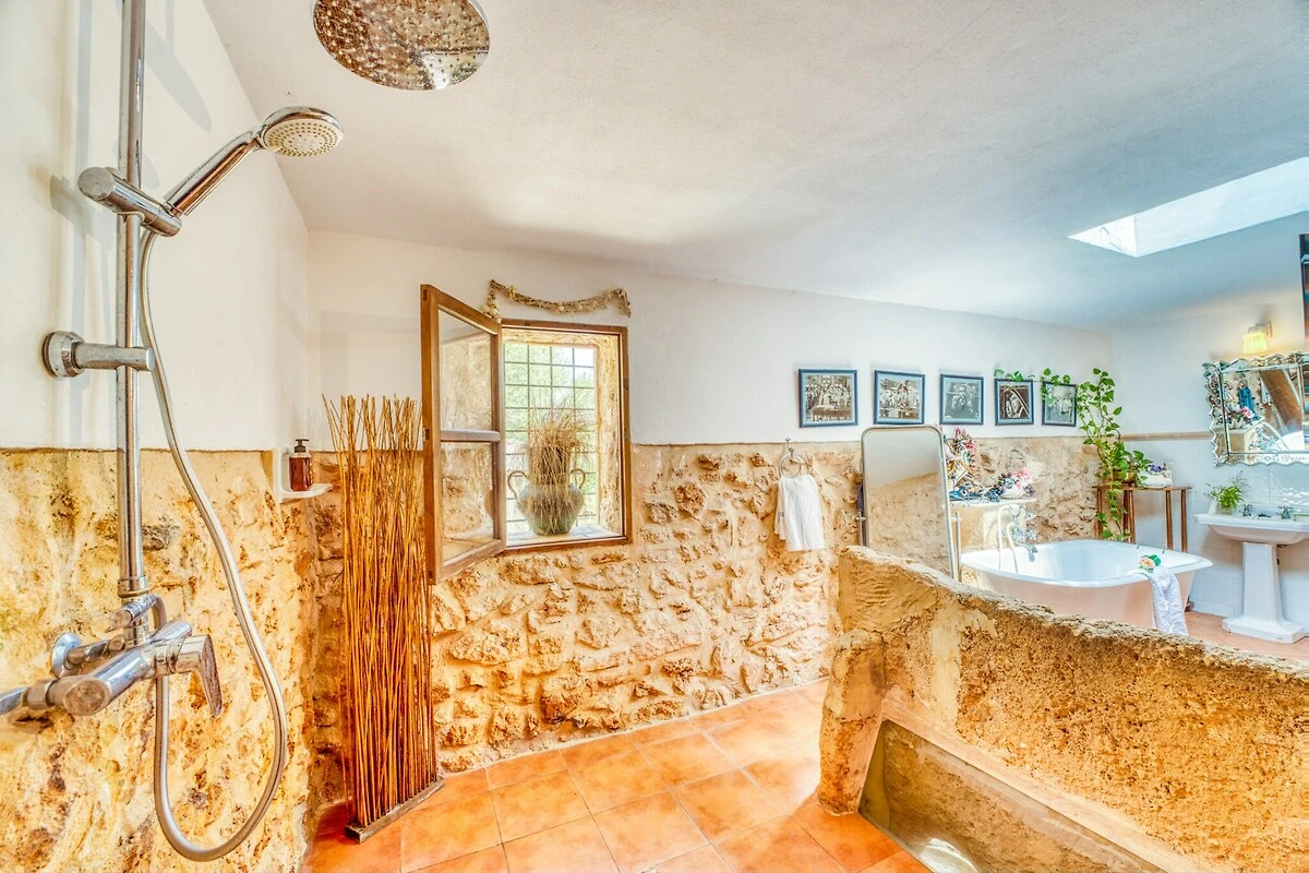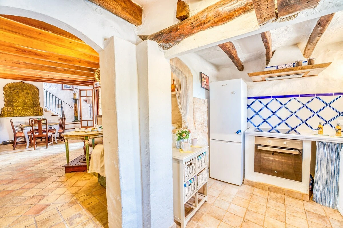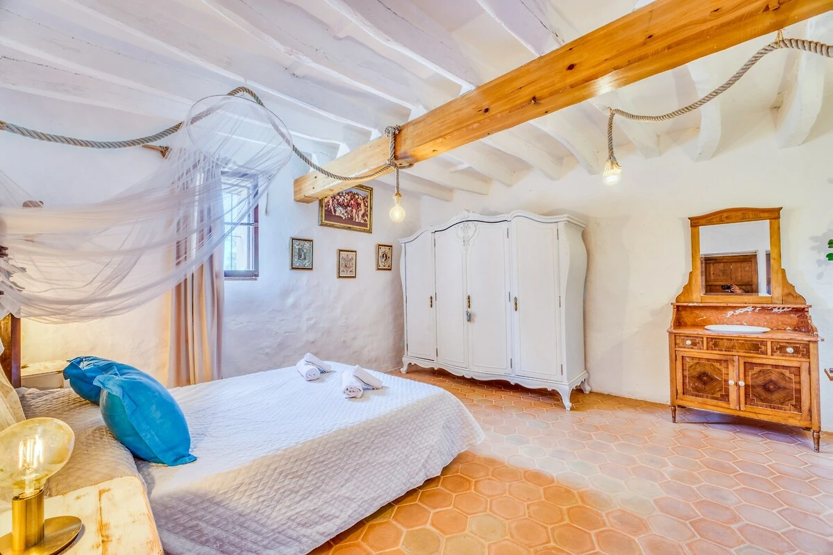 Das Innere des Anwesens besticht durch seinen rustikalen Charme und seine Funktionalität. Im Erdgeschoss befinden sich ein gemütliches Wohnzimmer mit Kamin und Esszimmer sowie eine voll ausgestattete Küche. Auf dieser Etage befinden sich zwei geräumige Schlafzimmer mit Doppelbetten und Klimaanlage sowie ein komplettes Badezimmer mit Badewanne. Im Obergeschoss befinden sich zwei weitere Schlafzimmer: eines mit Doppelbett und eines mit zwei Einzelbetten, beide ebenfalls mit Klimaanlage. Zusätzlich verfügt diese Etage über ein zweites Badezimmer mit Badewanne – ideal für mehr Gruppenkomfort. Das Anwesen liegt nur eine kurze Autofahrt von Algaida entfernt, einer charmanten Gemeinde mit Restaurants, Supermärkten und allen notwendigen Dienstleistungen. Freitags können Sie den traditionellen Markt mit lokalen Produkten besuchen. In nur einer kurzen Autofahrt erreichen Sie den Strand Can Pastilla, einen bekannten Inselstrand, der sich perfekt für einen Tag mit der Familie eignet.