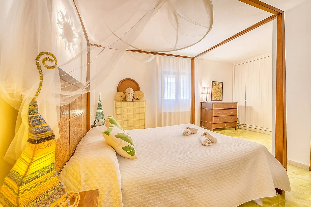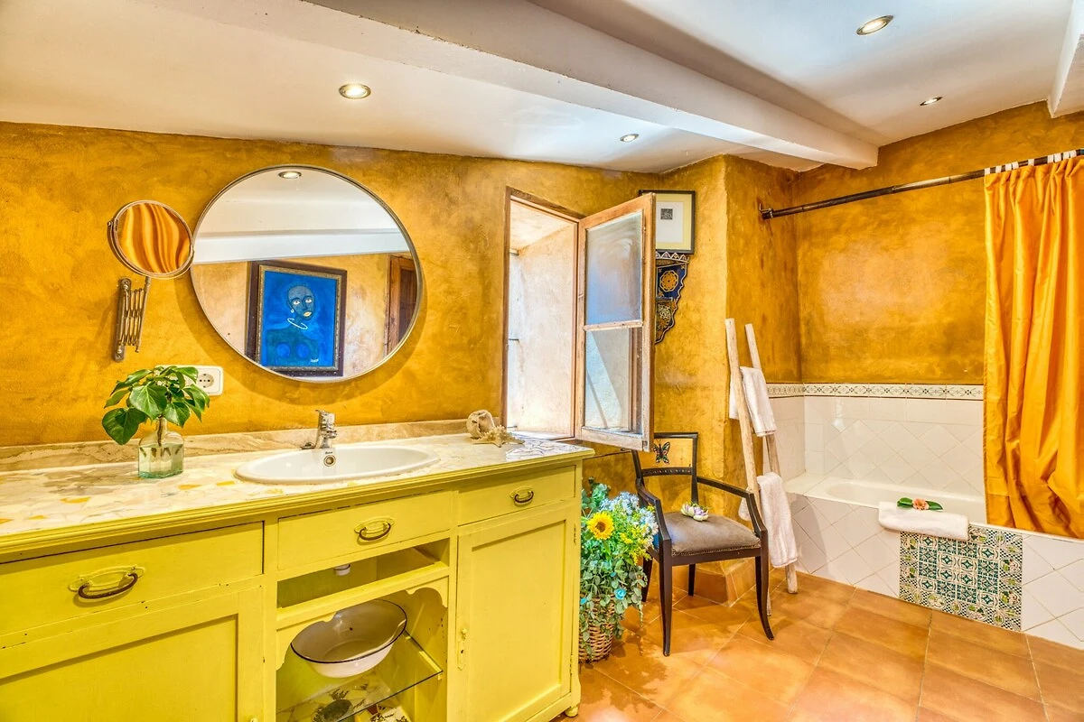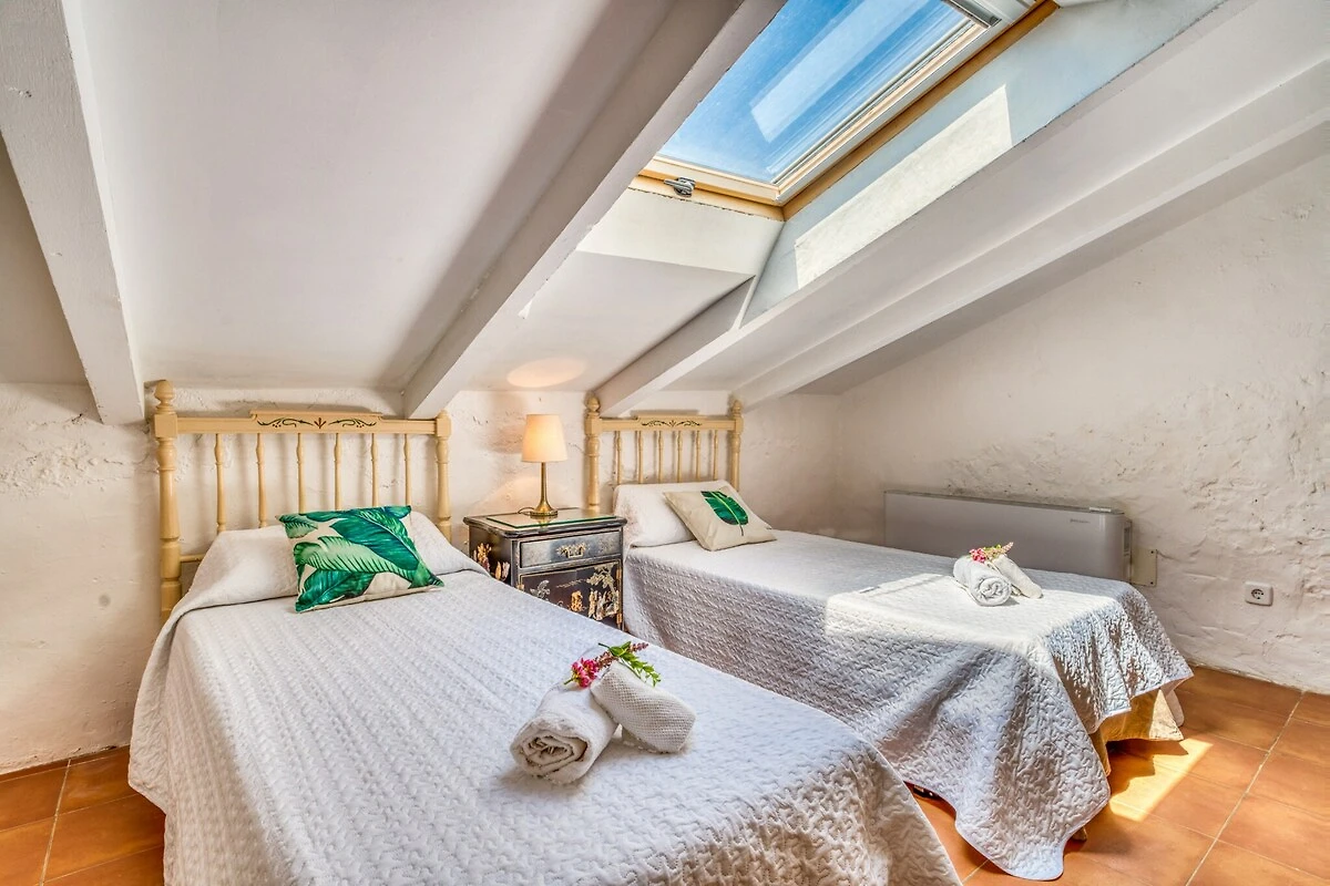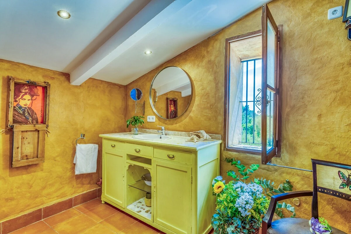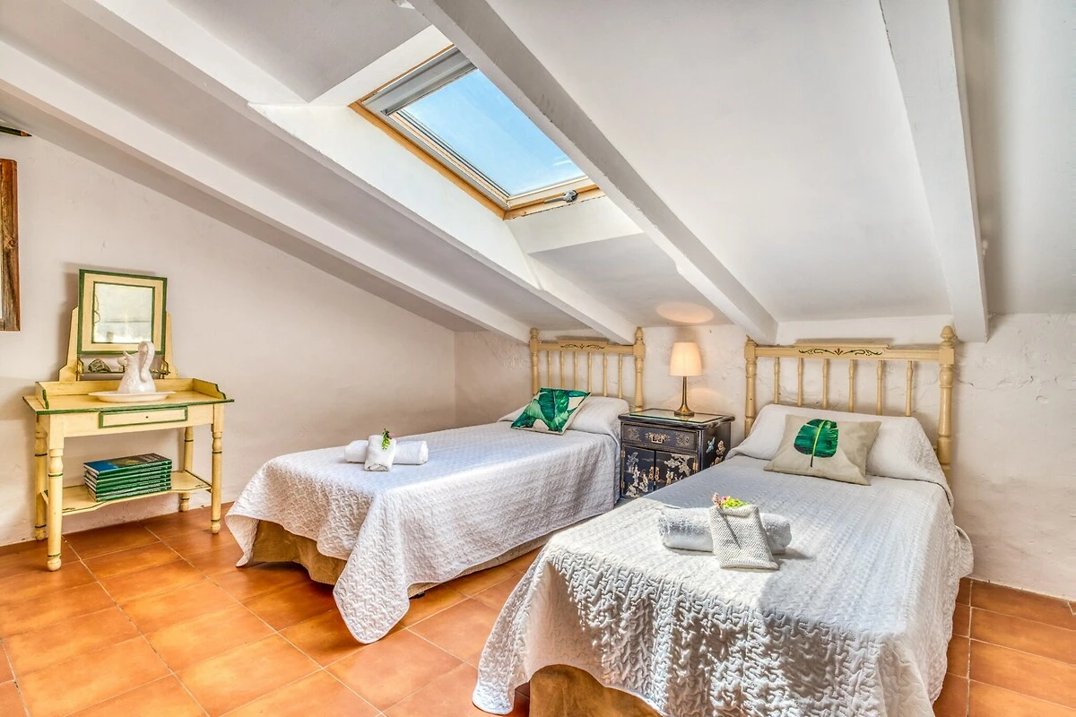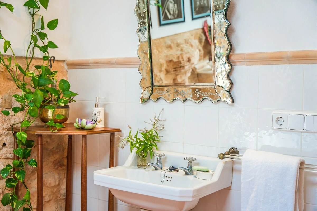 Das Innere des Anwesens besticht durch seinen rustikalen Charme und seine Funktionalität. Im Erdgeschoss befinden sich ein gemütliches Wohnzimmer mit Kamin und Esszimmer sowie eine voll ausgestattete Küche. Auf dieser Etage befinden sich zwei geräumige Schlafzimmer mit Doppelbetten und Klimaanlage sowie ein komplettes Badezimmer mit Badewanne. Im Obergeschoss befinden sich zwei weitere Schlafzimmer: eines mit Doppelbett und eines mit zwei Einzelbetten, beide ebenfalls mit Klimaanlage. Zusätzlich verfügt diese Etage über ein zweites Badezimmer mit Badewanne – ideal für mehr Gruppenkomfort. Das Anwesen liegt nur eine kurze Autofahrt von Algaida entfernt, einer charmanten Gemeinde mit Restaurants, Supermärkten und allen notwendigen Dienstleistungen. Freitags können Sie den traditionellen Markt mit lokalen Produkten besuchen. In nur einer kurzen Autofahrt erreichen Sie den Strand Can Pastilla, einen bekannten Inselstrand, der sich perfekt für einen Tag mit der Familie eignet.