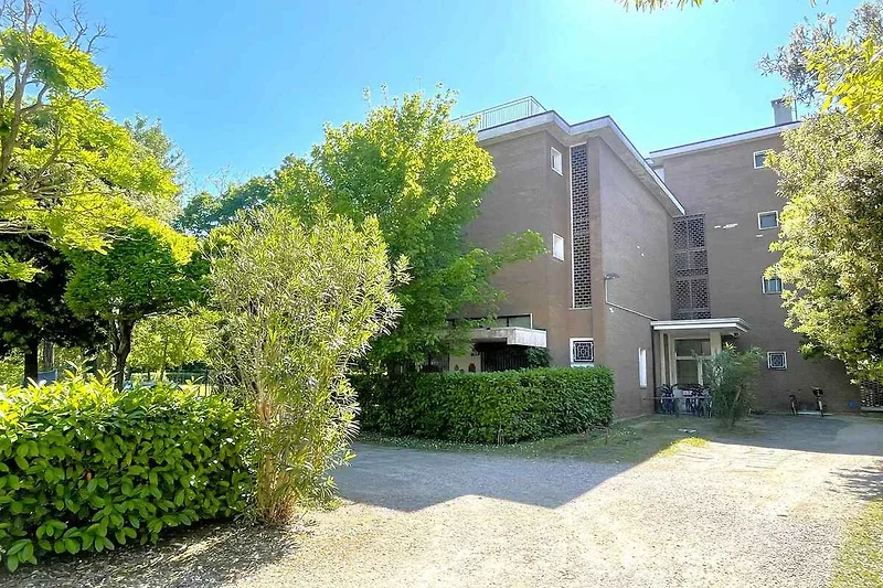 Bibione, Ortsteil Bibione Pineda. Der Vermieter wohnt nicht im Haus oder auf dem Grundstück. Die Zufahrt erfolgt über eine Nebenstrasse. Parkplatz (für 1 Pkw) auf dem Grundstück.