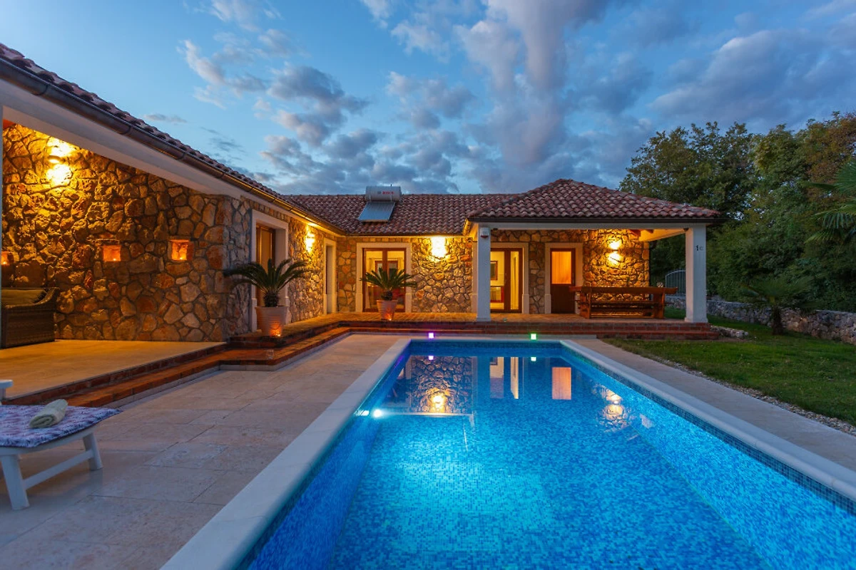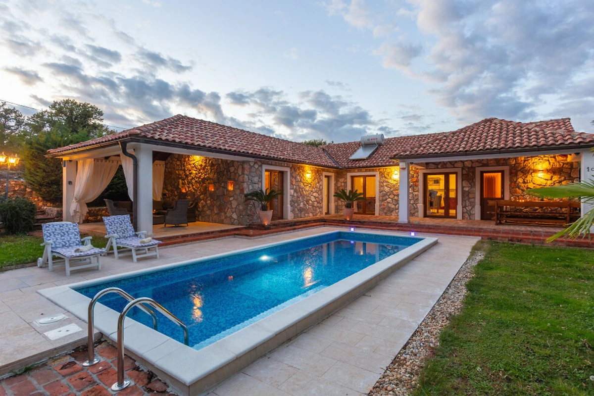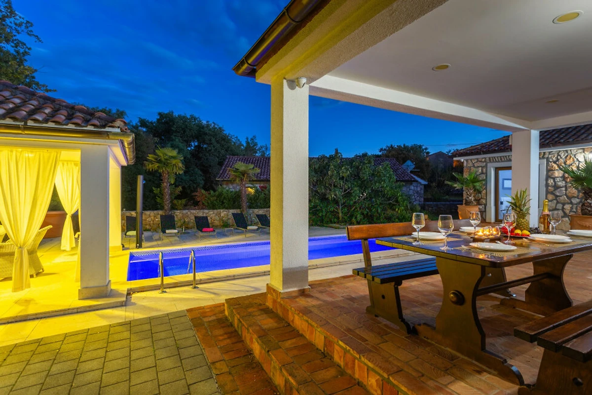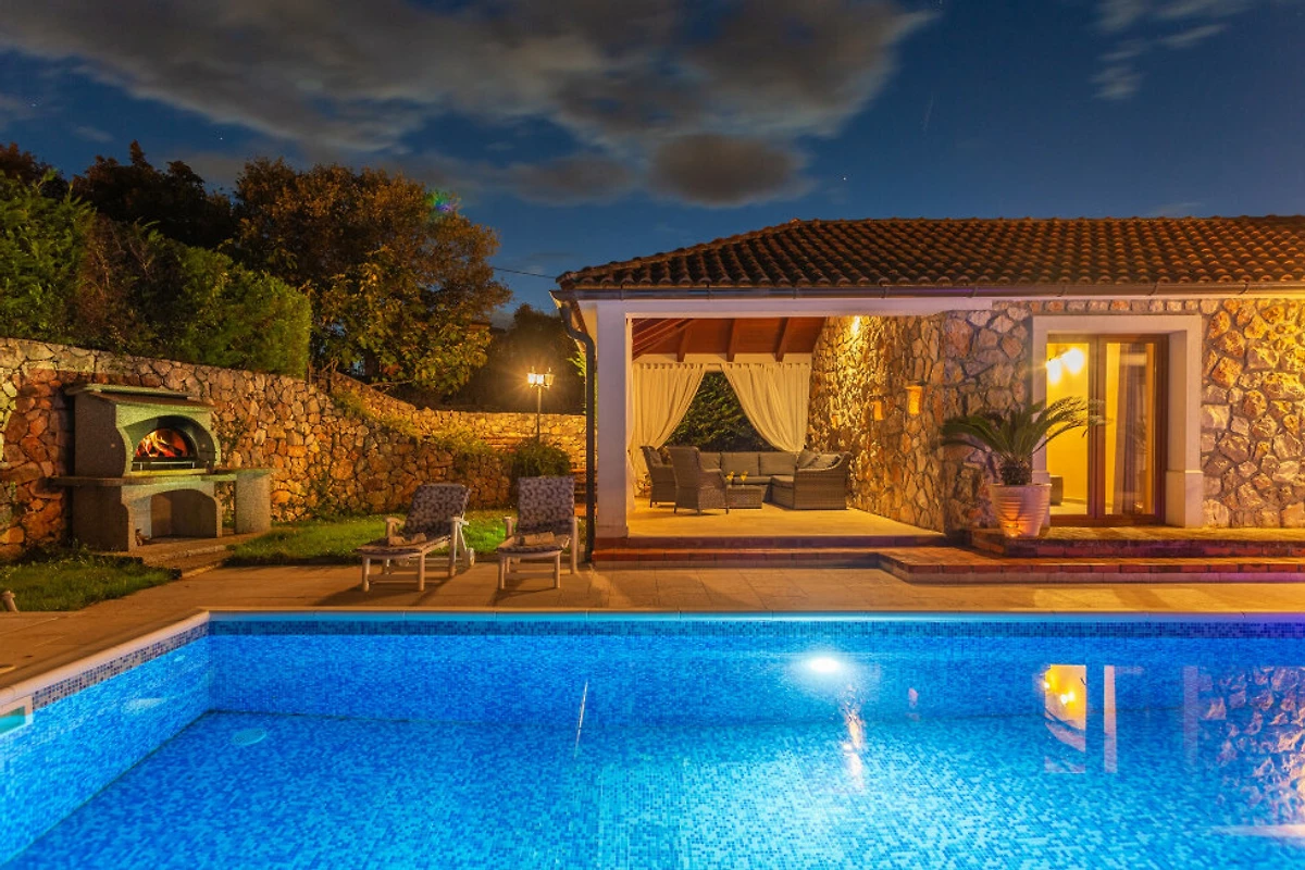 Entdecken Sie Villa Gostinjac 1, eine charmante ländliche Unterkunft, die in einer ruhigen Landschaftskulisse eingebettet ist, ideal für Familien, Paare und Freundesgruppen, die einen friedlichen Urlaub auf der Insel Krk suchen.