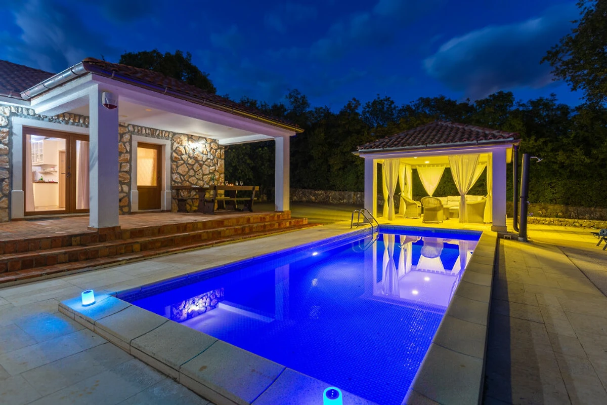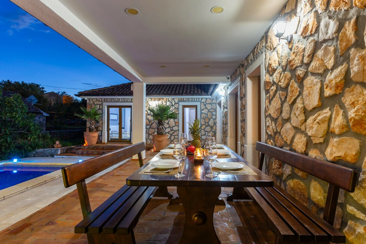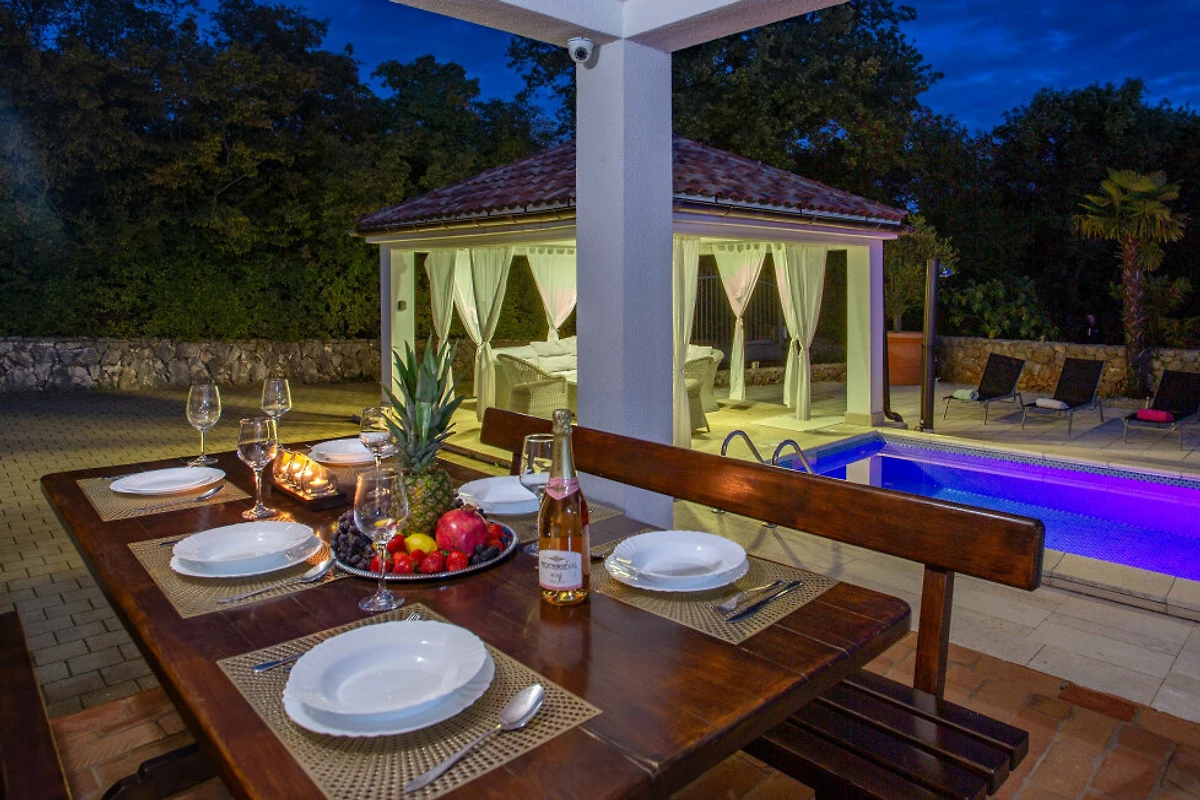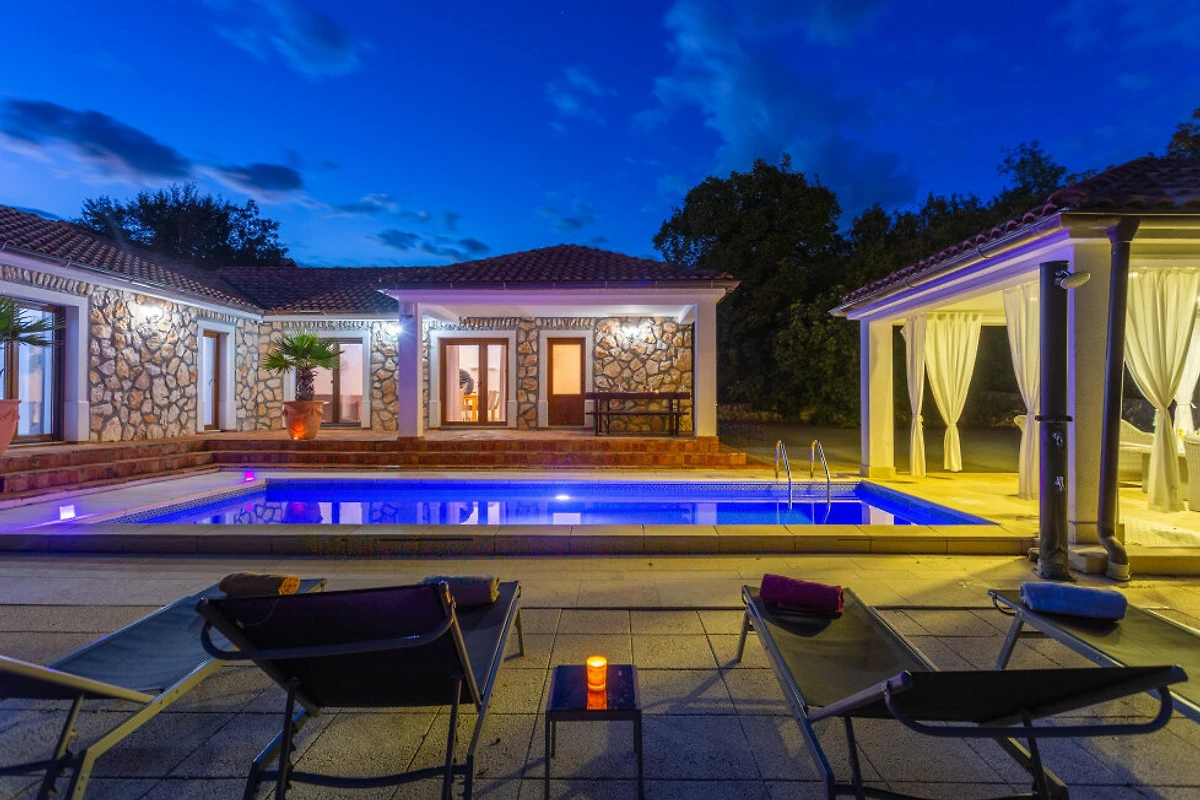Entdecken Sie Villa Gostinjac 1, eine charmante ländliche Unterkunft, die in einer ruhigen Landschaftskulisse eingebettet ist, ideal für Familien, Paare und Freundesgruppen, die einen friedlichen Urlaub auf der Insel Krk suchen.