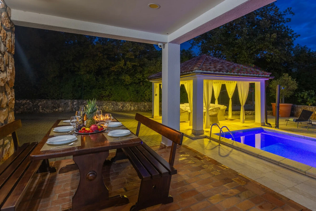 Nahe gelegene Sehenswürdigkeiten umfassen die Stadt Malinska und einen Supermarkt (11 km), wobei der Flughafen Rijeka etwa 20 km entfernt ist. Perfekt für Familien und Paare, die eine ruhige Auszeit mit hervorragenden Annehmlichkeiten und günstiger Lage suchen.
