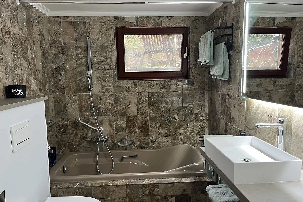 - Badezimmer mit Badewanne + separates Gäste-WC