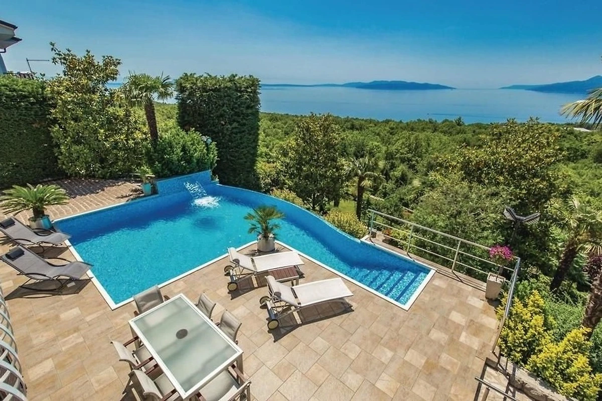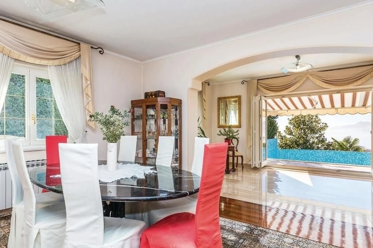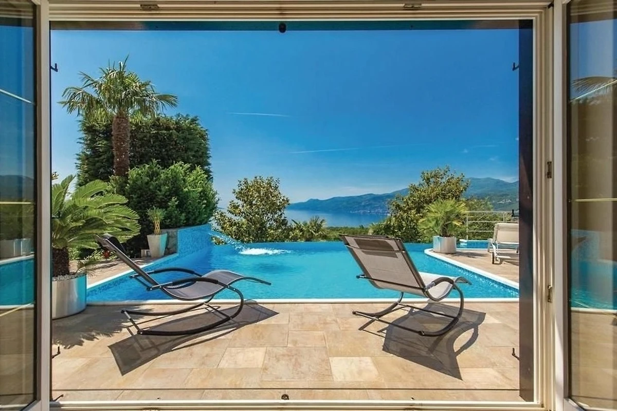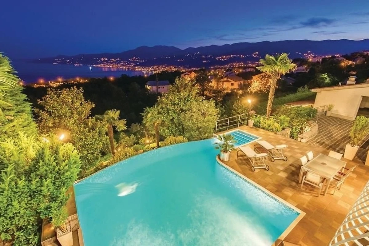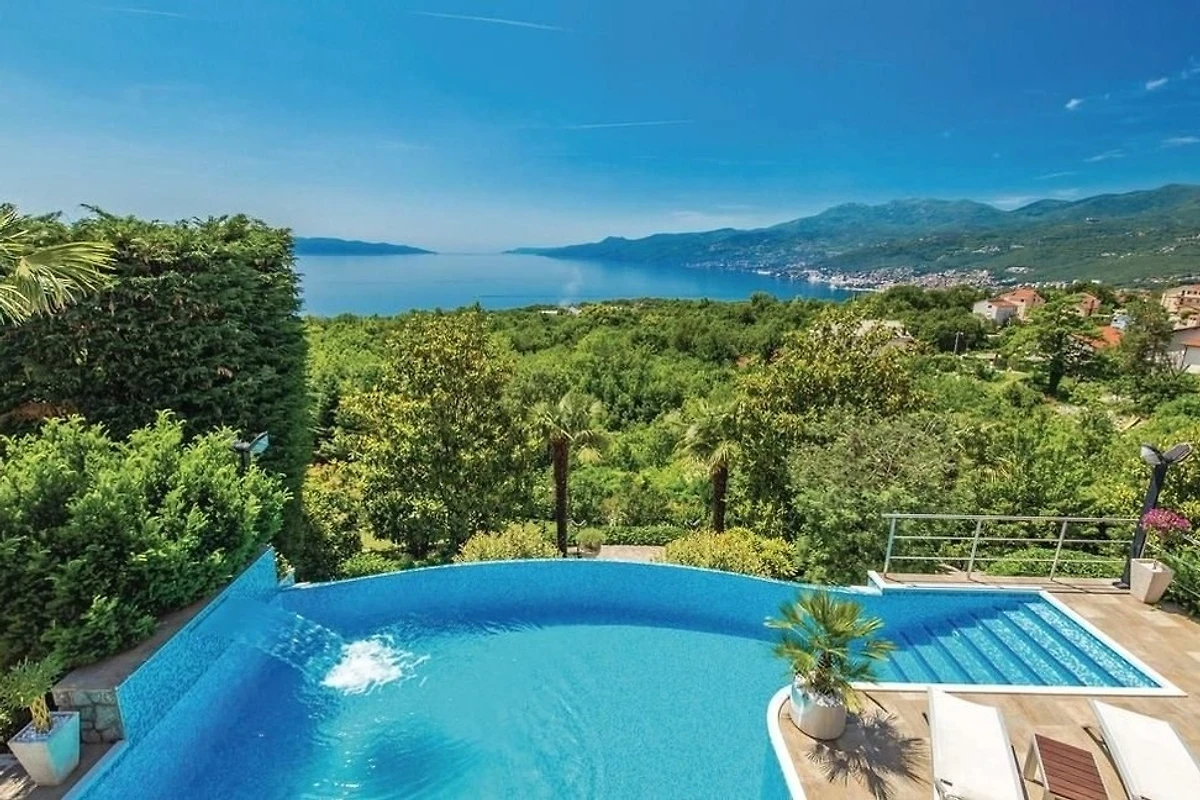 Villa Innerhofer Auszeit mit PanoramablicHoch über der Kvarner Bucht, zwischen der stilvollen und historisch bedeutsamen Küstenstadt Opatija und der Hafenstadt Rijeka, welche 2020 zur Kulturhauptstadt Europas erwählt wurde, liegt das charmante Künstlerstädtchen Kastav. Dort treffen Ruhe, Kultur und Natur aufeinander.Ein Ort zum Entspannen und GeniessenDie Villa Innerhofer liegt in Kastav im Ortsteil Brestovice und hat eine Wohnfläche von über 300 m2. Der 2.000 m² grosse, uneinsehbare Garten mit malerischen Steinwegen bietet absolute Privatsphäre und viel Platz zum Entspannen. Die grosszügige Terrasse mit Infinity-Pool bietet einen freien 180-Grad-Blick auf das atemberaubende Panorama der Kvarner Bucht. Im Garten befindet sich eine überdachte, traditionelle Konoba mit Grill der perfekte Ort für gesellige Abende, unabhängig von der Witterung.Grosszügige Wohnräume für höchsten KomfortDas Haus erstreckt sich über drei Etagen und bietet viel Platz für Erholung und Privatsphäre mit Schlafmöglichkeit für 10 -12 Personen Das grosse, gemütliche Wohnzimmer im Erdgeschoss bietet direkten Zugang zur Terrasse und zum Pool, perfekt für erholsame Stunden. Direkt angrenzend befindet sich eine gut ausgestattete Küche.Im ersten Obergeschoss stehen Ihnen zwei geräumige, klimatisierte Doppelzimmer zur Verfügung. Diese teilen sich eine grossflächige Terrasse mit einem eindrucksvollen Panorama. Zwei Badezimmer stehen zur Verfügung, ebenso wie ein Zweibettzimmer und ein Einbettzimmer, die Platz für 3 weitere Personen bieten.Das zweite Obergeschoss bietet eine flexible, klimatisierte Wohneinheit, die bei Bedarf abgetrennt werden kann. Es verfügt über zwei Badezimmer, ein gemütliches Doppelbettzimmer und eine offene Küche mit angrenzendem Wohnzimmer. Letzteres ist mit einer grossen ausziehbaren Couch ausgestattet, die bequem Platz für 2 Personen zum Schlafen bietet. Zusätzlich gibt es ein weiteres Einzelbettzimmer. Das Highlight dieser Etage ist der grosszügige Balkon, der einen sensationellen Blick über die Inseln Krk und Cres bis an Istriens Südspitze eröffnet.In der Villa Innerhofer finden grössere Gruppen oder Familien den idealen Ort, um gemeinsam Urlaub zu machen, ohne auf Privatsphäre verzichten zu müssen.