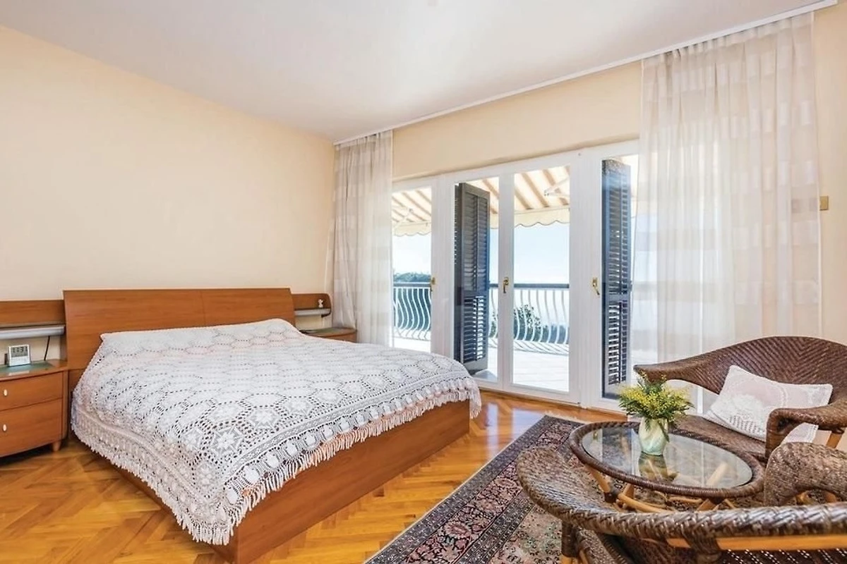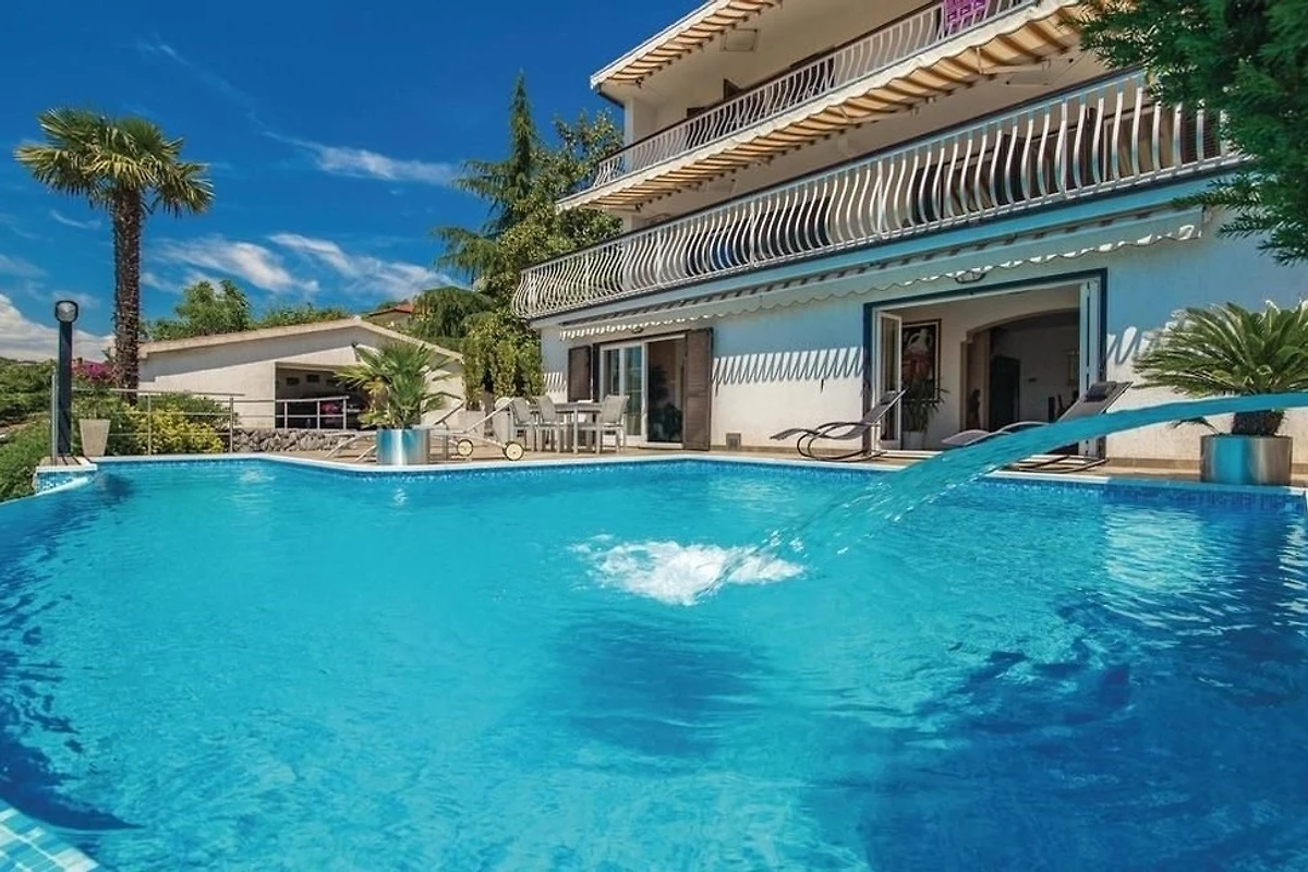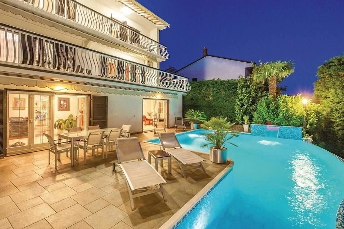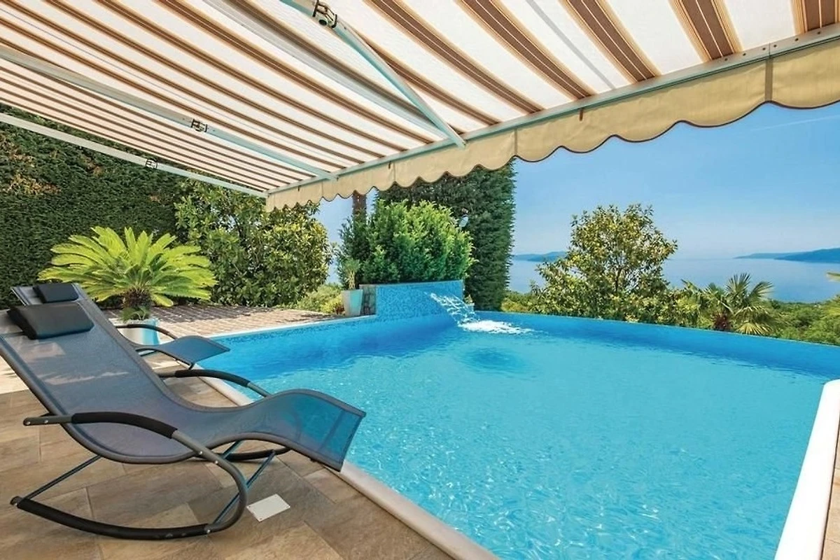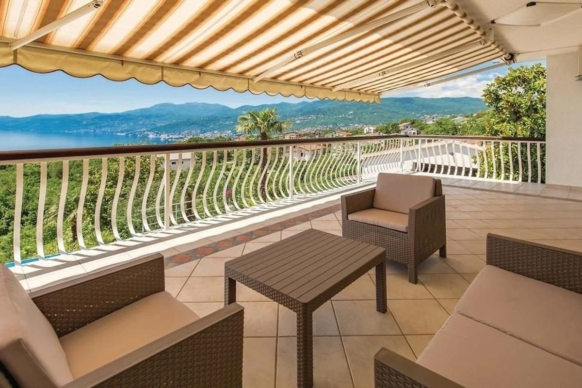 Villa Innerhofer Auszeit mit PanoramablicHoch über der Kvarner Bucht, zwischen der stilvollen und historisch bedeutsamen Küstenstadt Opatija und der Hafenstadt Rijeka, welche 2020 zur Kulturhauptstadt Europas erwählt wurde, liegt das charmante Künstlerstädtchen Kastav. Dort treffen Ruhe, Kultur und Natur aufeinander.Ein Ort zum Entspannen und GeniessenDie Villa Innerhofer liegt in Kastav im Ortsteil Brestovice und hat eine Wohnfläche von über 300 m2. Der 2.000 m² grosse, uneinsehbare Garten mit malerischen Steinwegen bietet absolute Privatsphäre und viel Platz zum Entspannen. Die grosszügige Terrasse mit Infinity-Pool bietet einen freien 180-Grad-Blick auf das atemberaubende Panorama der Kvarner Bucht. Im Garten befindet sich eine überdachte, traditionelle Konoba mit Grill der perfekte Ort für gesellige Abende, unabhängig von der Witterung.Grosszügige Wohnräume für höchsten KomfortDas Haus erstreckt sich über drei Etagen und bietet viel Platz für Erholung und Privatsphäre mit Schlafmöglichkeit für 10 -12 Personen Das grosse, gemütliche Wohnzimmer im Erdgeschoss bietet direkten Zugang zur Terrasse und zum Pool, perfekt für erholsame Stunden. Direkt angrenzend befindet sich eine gut ausgestattete Küche.Im ersten Obergeschoss stehen Ihnen zwei geräumige, klimatisierte Doppelzimmer zur Verfügung. Diese teilen sich eine grossflächige Terrasse mit einem eindrucksvollen Panorama. Zwei Badezimmer stehen zur Verfügung, ebenso wie ein Zweibettzimmer und ein Einbettzimmer, die Platz für 3 weitere Personen bieten.Das zweite Obergeschoss bietet eine flexible, klimatisierte Wohneinheit, die bei Bedarf abgetrennt werden kann. Es verfügt über zwei Badezimmer, ein gemütliches Doppelbettzimmer und eine offene Küche mit angrenzendem Wohnzimmer. Letzteres ist mit einer grossen ausziehbaren Couch ausgestattet, die bequem Platz für 2 Personen zum Schlafen bietet. Zusätzlich gibt es ein weiteres Einzelbettzimmer. Das Highlight dieser Etage ist der grosszügige Balkon, der einen sensationellen Blick über die Inseln Krk und Cres bis an Istriens Südspitze eröffnet.In der Villa Innerhofer finden grössere Gruppen oder Familien den idealen Ort, um gemeinsam Urlaub zu machen, ohne auf Privatsphäre verzichten zu müssen.