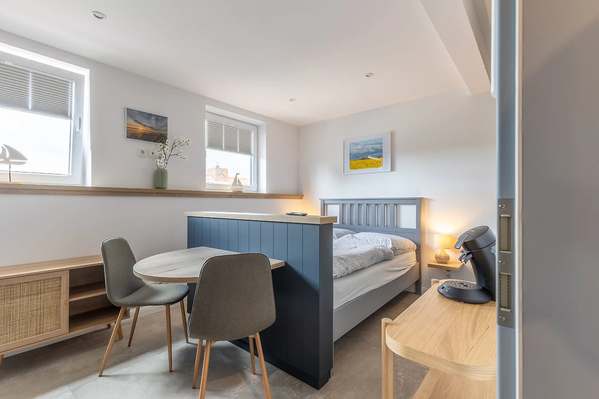Treten Sie ein und lassen Sie den Alltag hinter sich: Das Mini-Apaartment "Baltrum" heisst Sie herzlich willkommen und bietet Ihnen die perfekte Basis für einen erholsamen Nordseeurlaub – ob allein oder zu zweit.