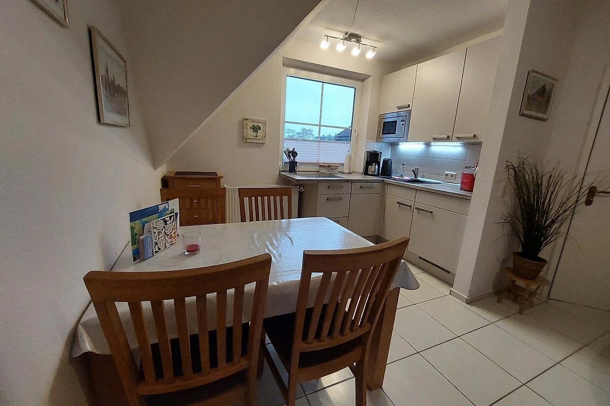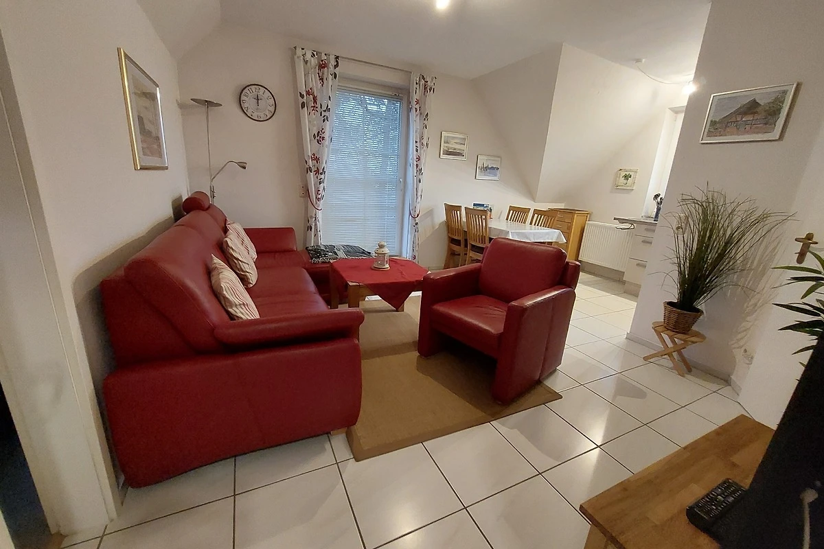 Wohn-/Esszimmer mit gemütlicher Sitzecke, Flachbild-TV
