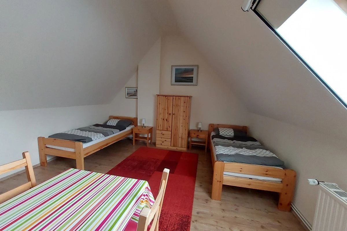 Zwei separate Schlafzimmer mit bequemen Doppelbett im Elternschlafzimmer bzw. Einzelbetten im 2. Obergeschoss.